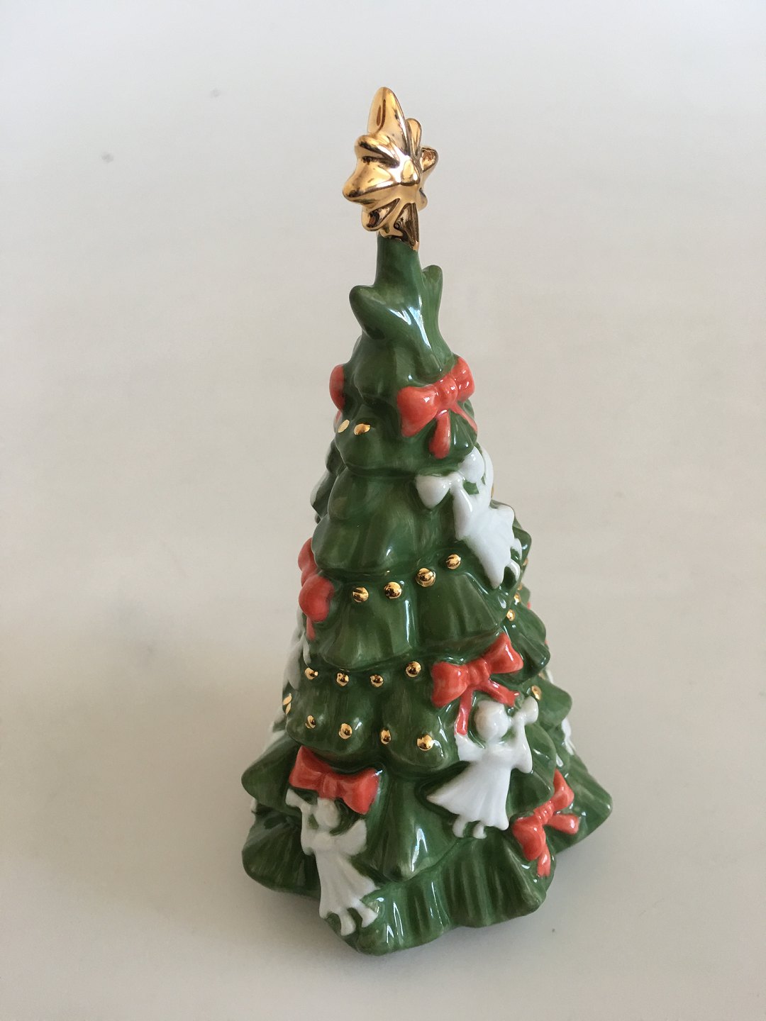 Royal Copenhagen 2010 Årsfigur af Juletræ No 814 i Porcelæn Dekoreret med Engle og Røde Sløjfer. Kreeret af Sven Vestergaard. 13.5 cm H. I perfekt stand og i original æske.