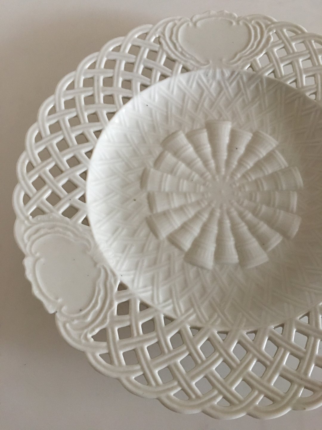 Royal Copenhagen Antik Hvid Tallerken 1790-1810 med Flettet Gennembrudt Kant. 24 cm Ø. I fin hel stand.