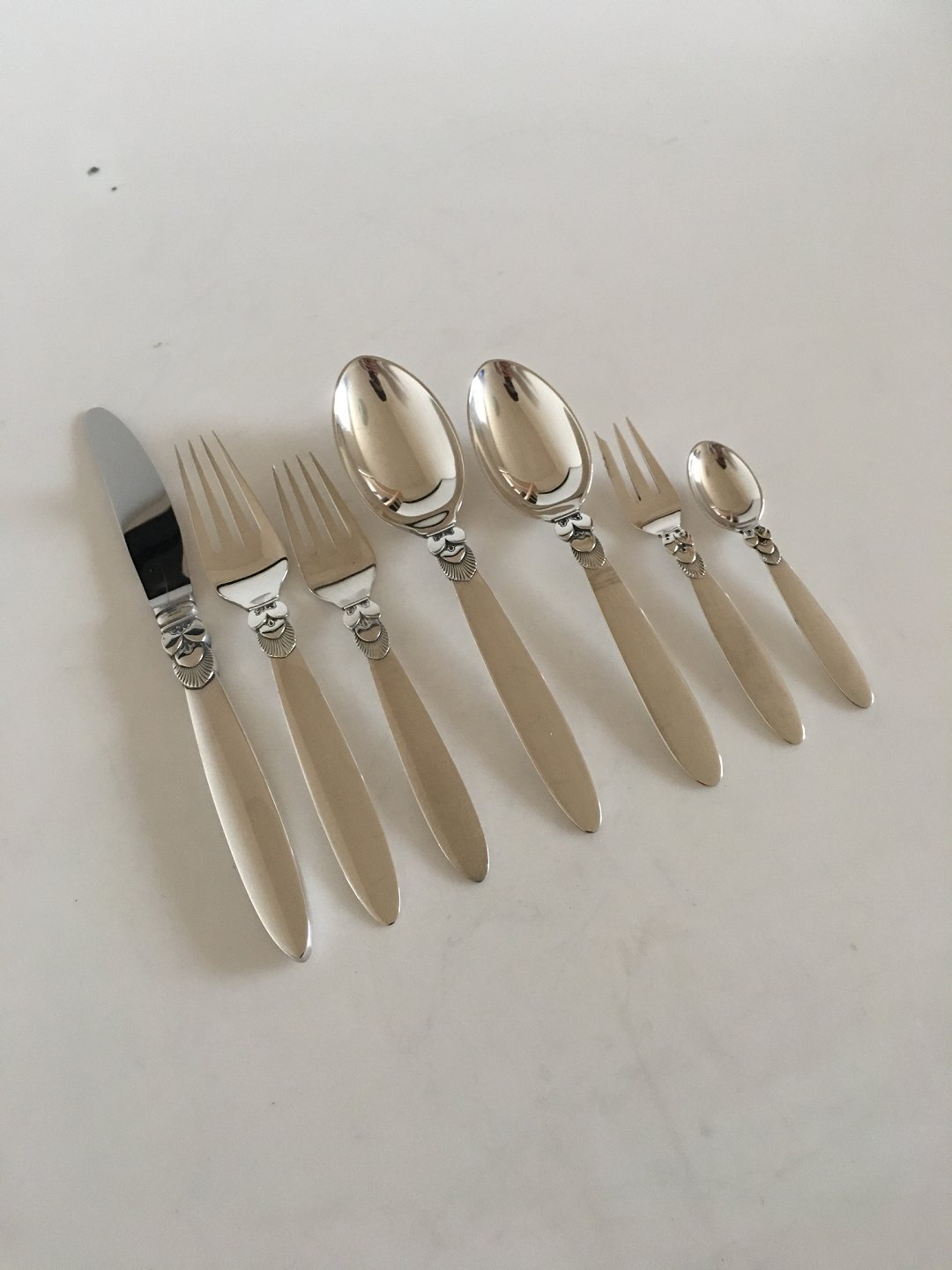 Georg Jensen Sterling Silver Cactus Flatware Set for 6 People. 42 Pieces. The set consists of: