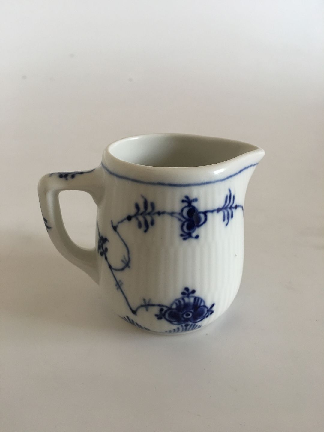 Royal Copenhagen Musselmalet Riflet Flødekande No 2228. Med tyk kant. 1. Sortering. I fin hel stand. 7.5 cm Høj.