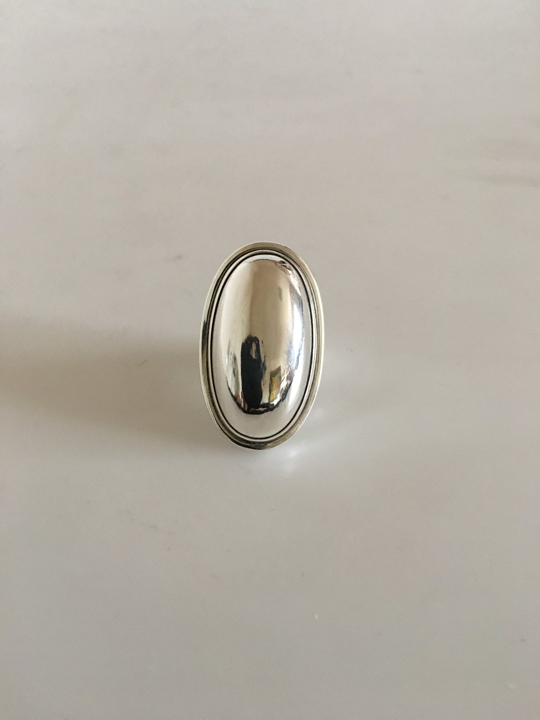 Georg Jensen Sterling Silver Ring No 46E. With oval setting that measures 3.5 cm / 1 3/8 in. With GJ marks dating from after 1945. Ring Size 49 / US 5. Weighs 16.8 g / 0.59 oz.