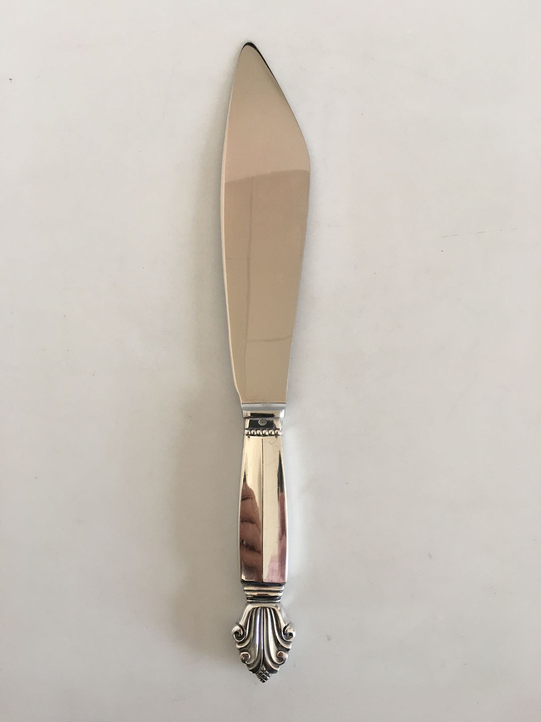 Georg Jensen Dronning Kagekniv No 196 i Sterling Sølv og Rustfrit Stål. Måler 26,5 cm