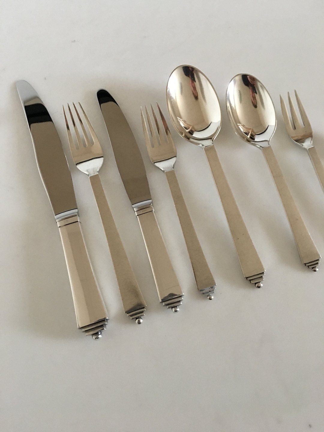 Georg Jensen Sterling Silver Pyramid Flatware Set for 12 People. 96 Pieces. The set consists of the following items;