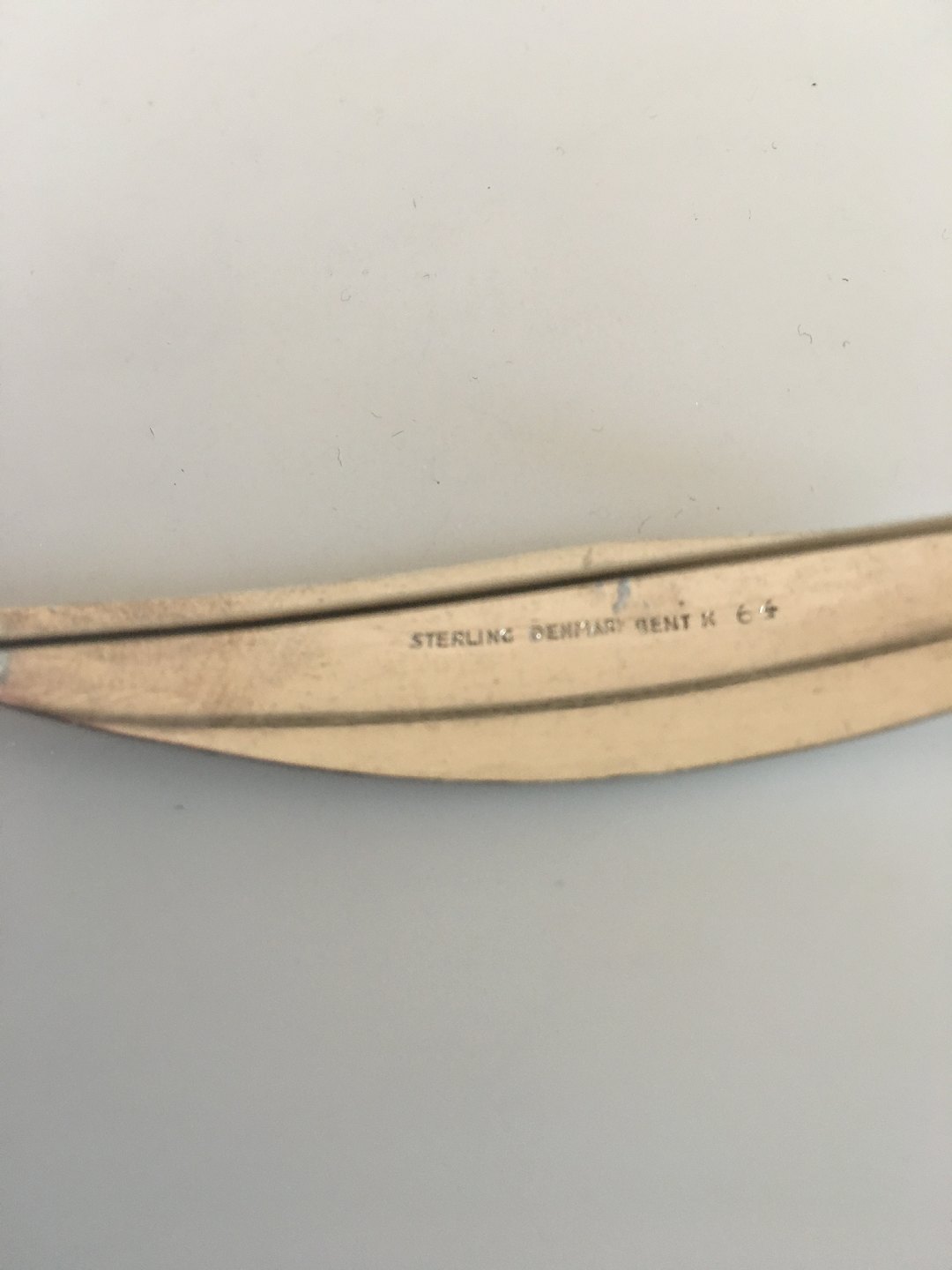 Bent Knudsen Sterling Silver Brooch No 64. Measures 7.5 cm long / 2 61/64", 1.5 cm / 0 19/32" wide. Weighs 12 g / 0.40 oz.