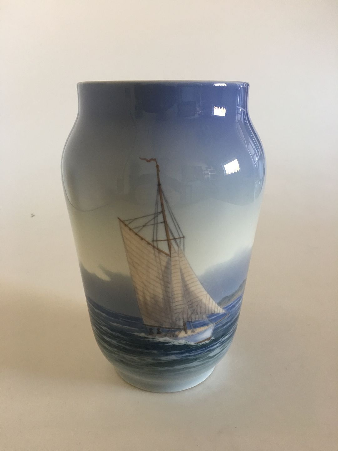 Royal Copenhagen Vase No 2842/3604 med Skibsmotiv. 21.5 cm H. 1. Sortering i fin og hel stand.