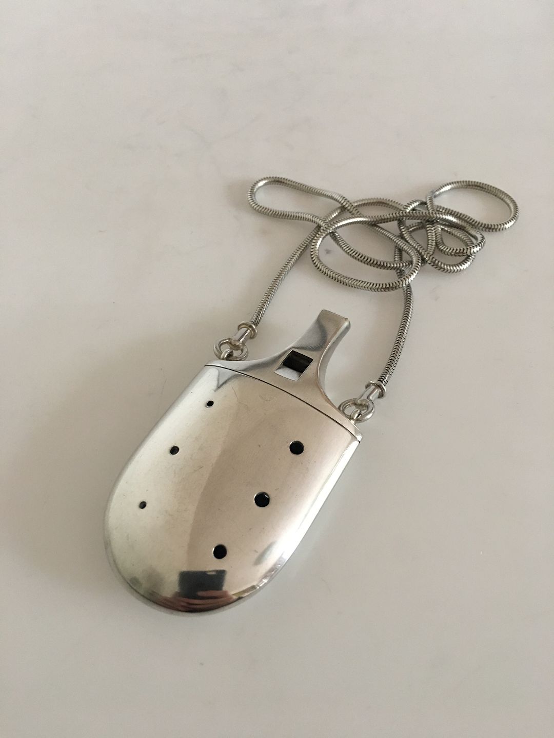 Hans Hansen Sterling Silver Whistle Flute with Chain. Works and in great condition. Measures 8 cm x 4 cm / 3 5/32 in. x 1 37/64 in. Weighs 86 g / 3 oz.