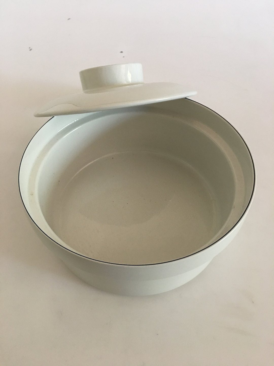 Royal Copenhagen Grethe Meyer Blåkant Lidded Bowl No 3046. 10 cm H. 23.5 cm dia