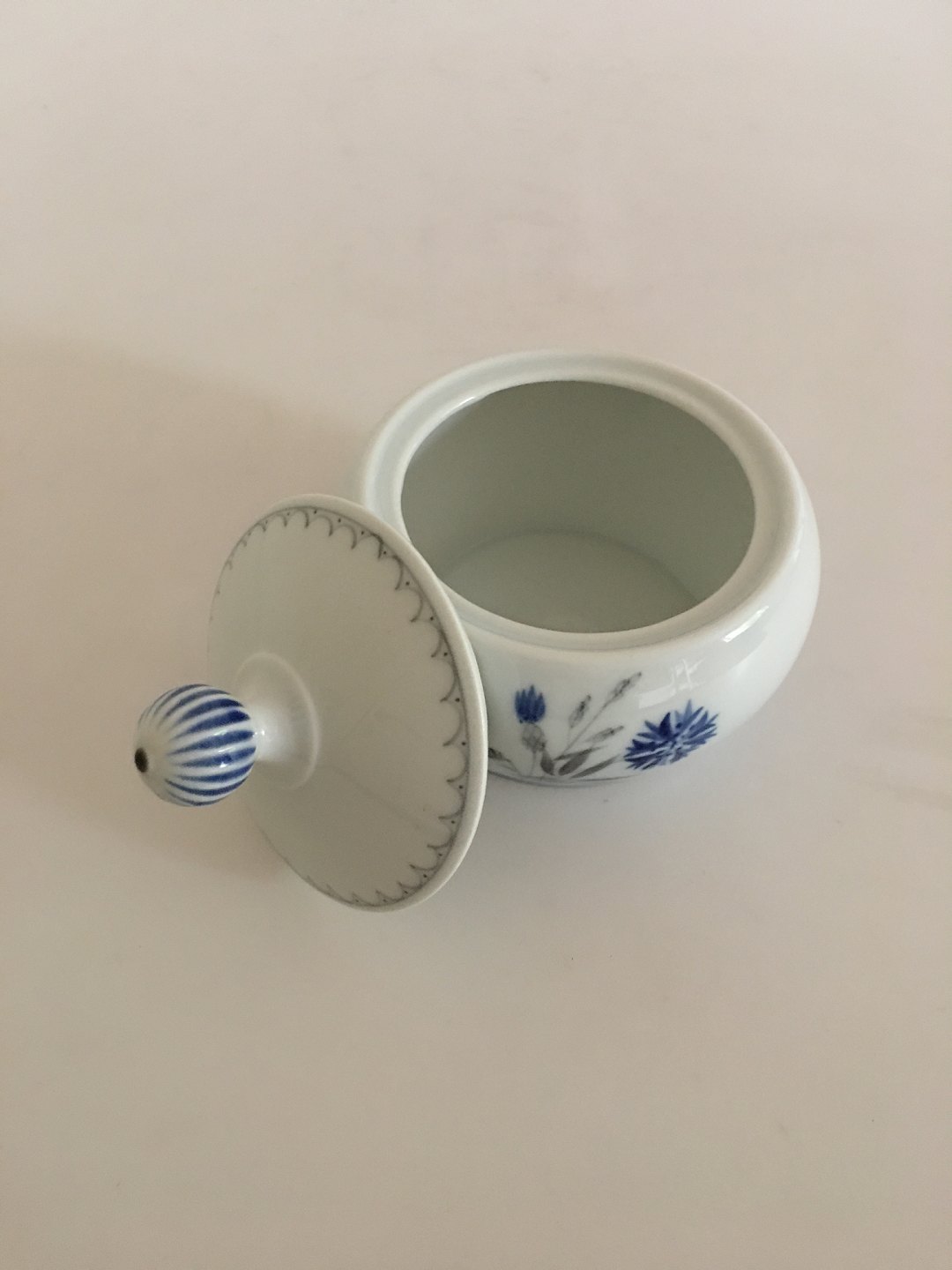 Bing & Grøndahl Demeter / Blå Kornblomst Sukkerskål No 94. 6.5 cm H (målt uden låg). 11.5 cm dia.
