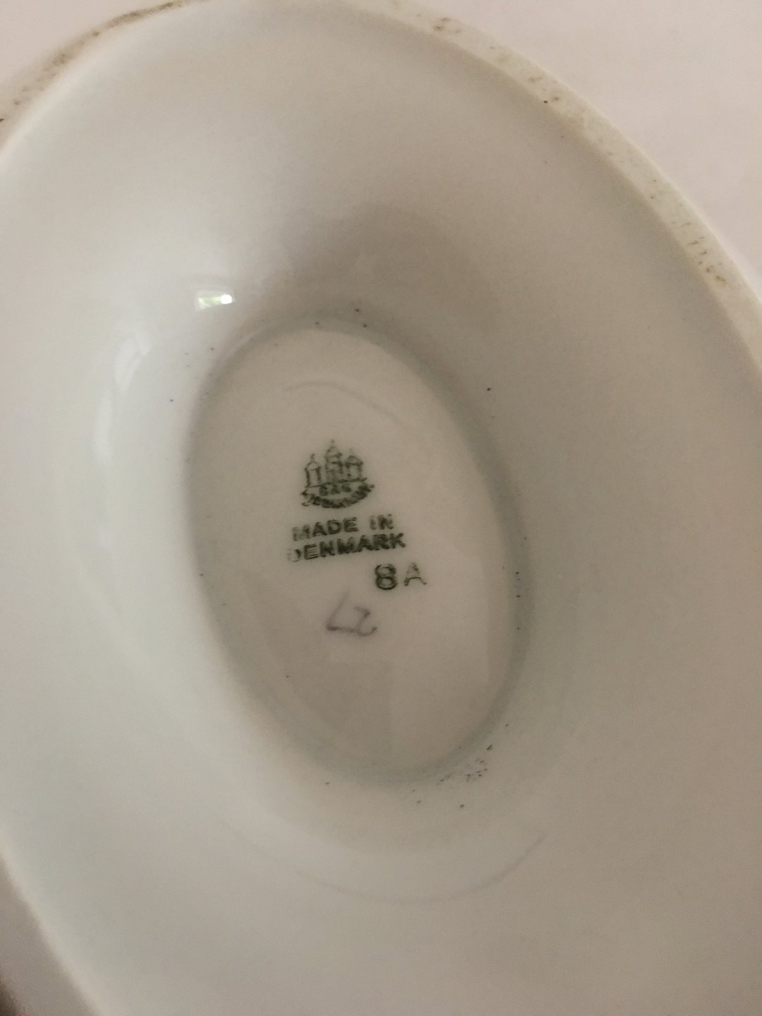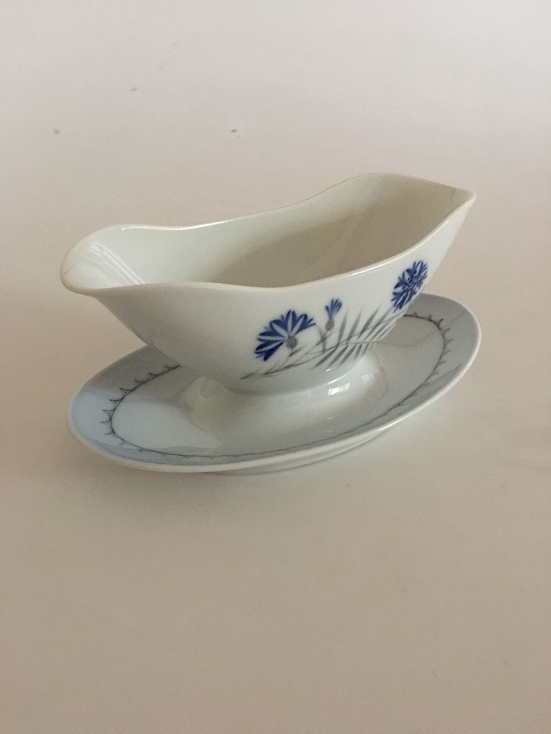 Bing & Grondahl Demeter / Blue Cornflower Sauce Pot No 8A. 8.5 cm H. The sauce container itself is 16.5 x 7.5 cm
