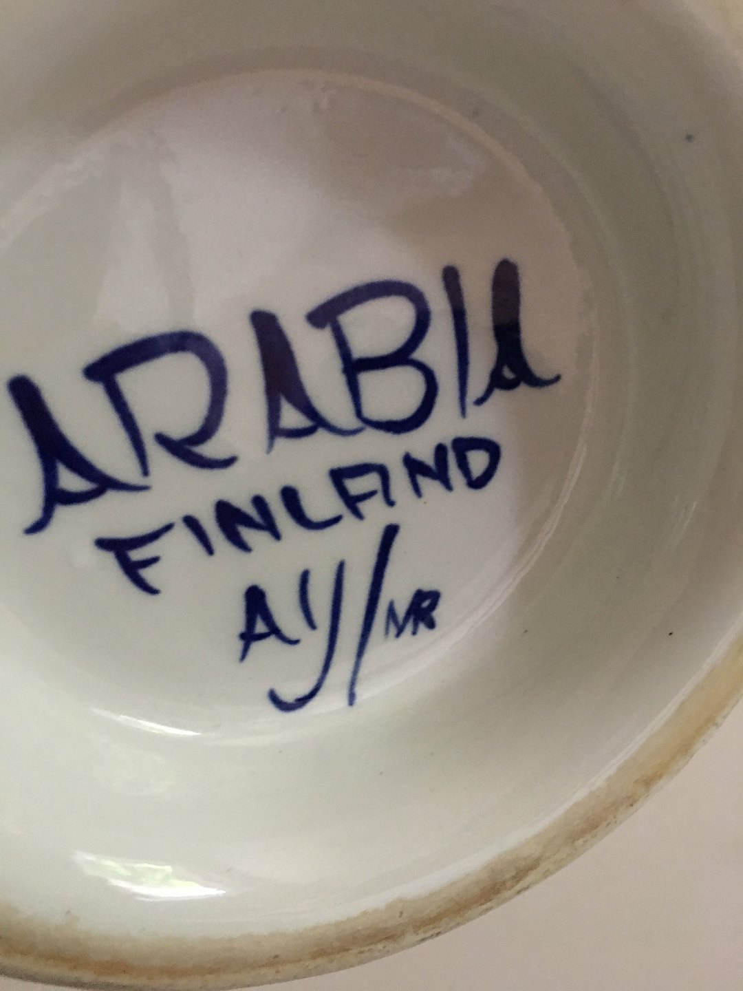 Arabia Finland Handpainted Ceramic Tea Pot. Contains about 1 L. In nice condition, but the lid has a small chip (Look at picture)