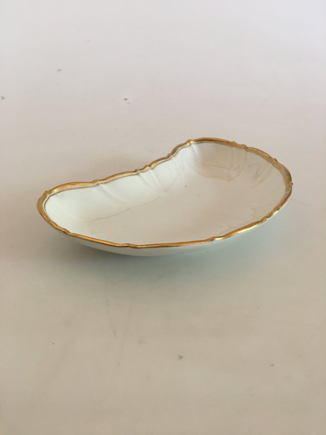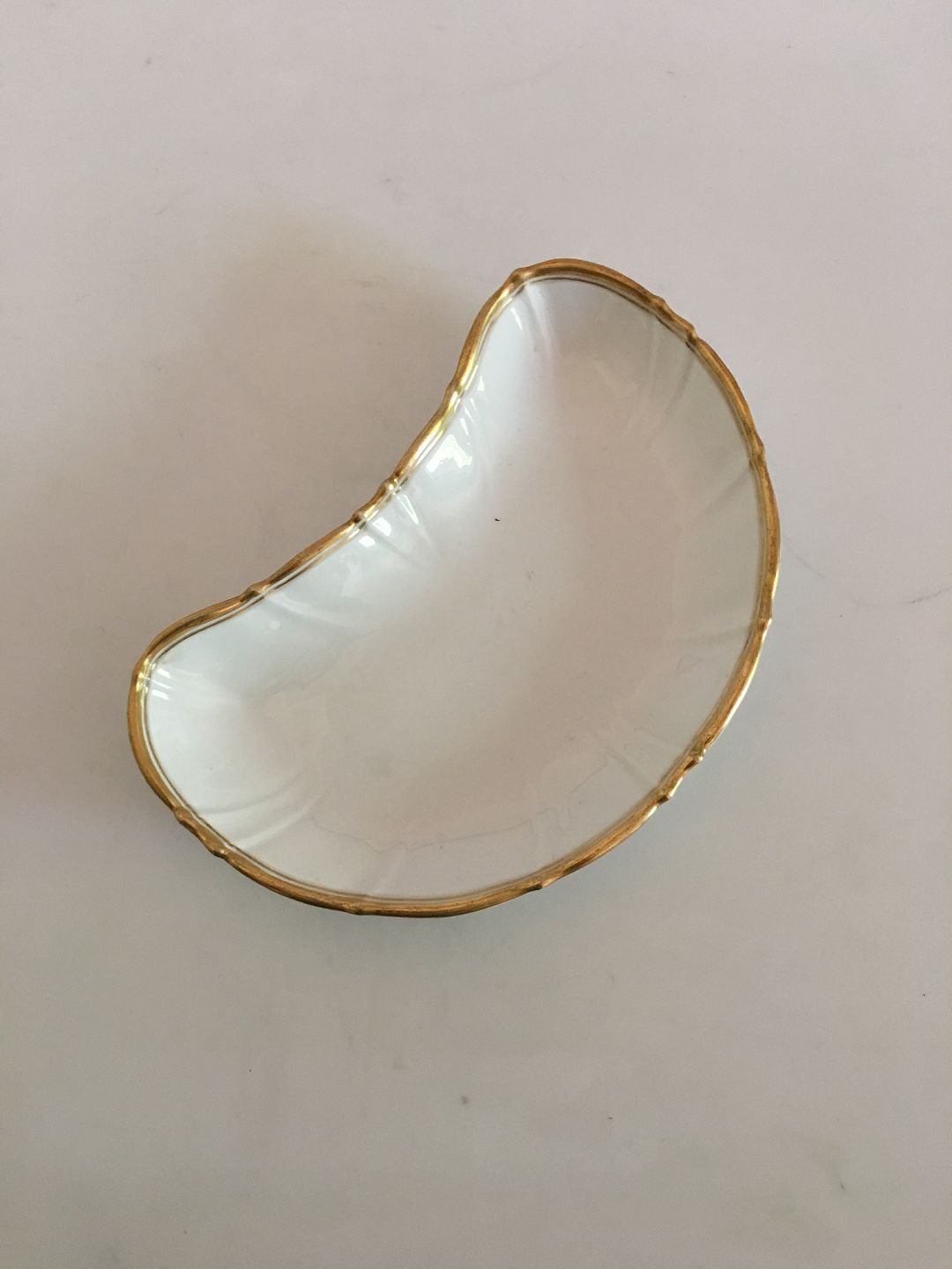 Bing & Grøndahl Offenbach Half Moon Shaped Asiet. Measures 20 x 11.5 cm. In good condition, with some wear on the gold