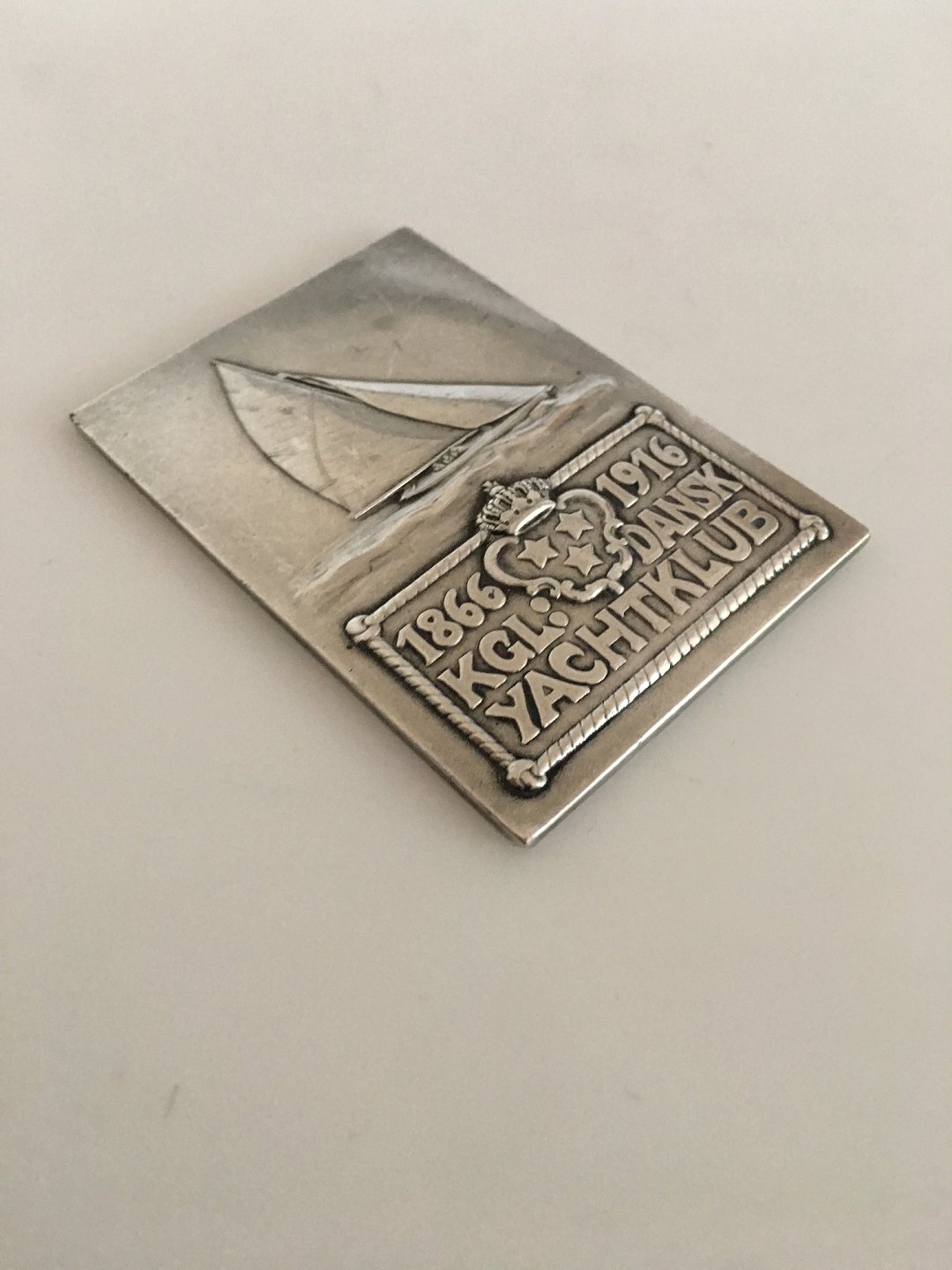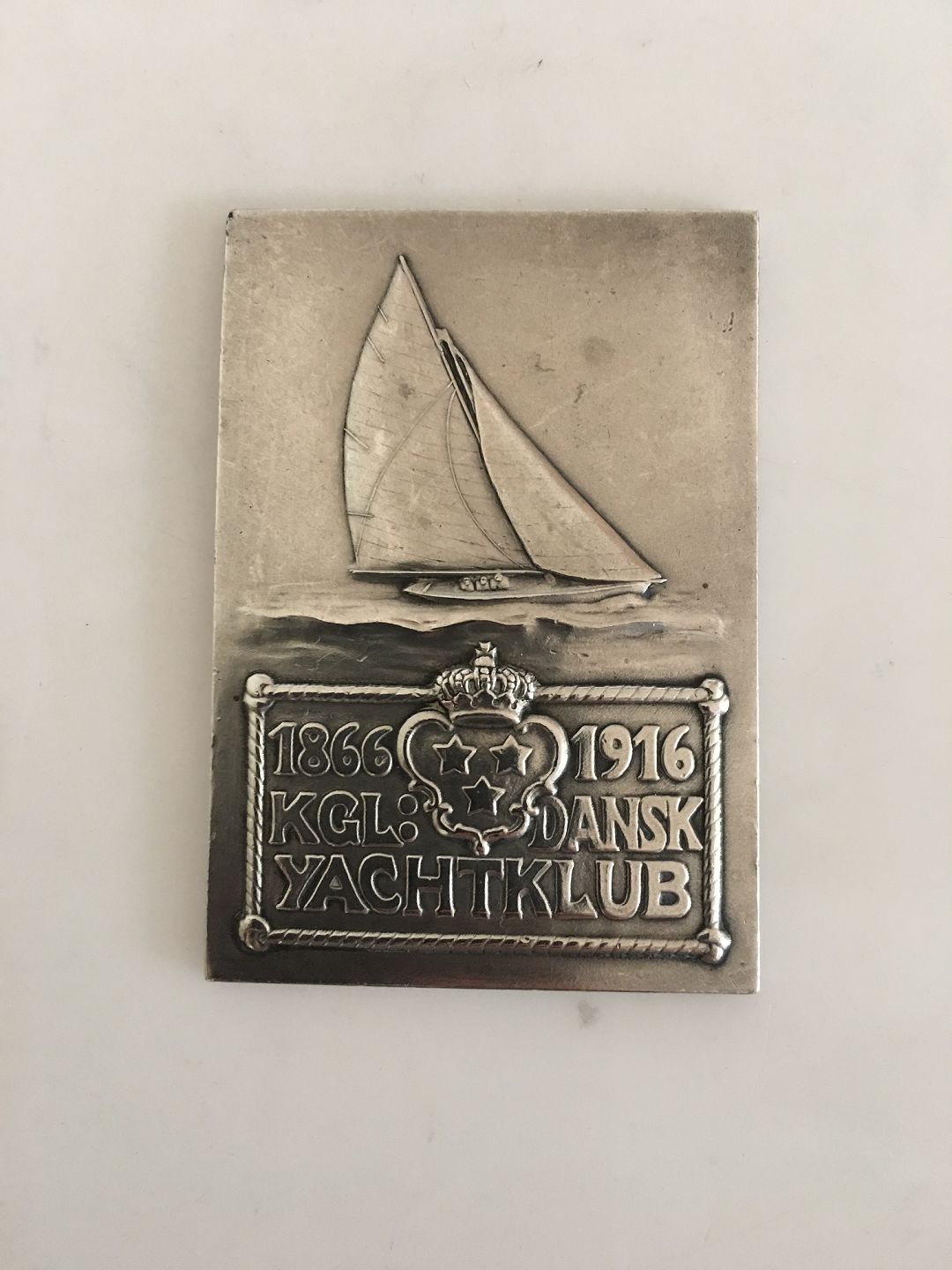 A. Dragsted Minde Sølv Mærkat i 990 Sølv. "1866-1916 Kgl. Dansk Yachtklub" Måler 7 x 5 cm. Vejer 94 gram.