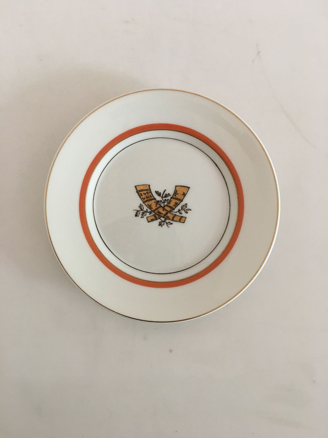 Royal Copenhagen Guldhornene med Orange Kant Tallerken No 883/9588. 16 cm dia.