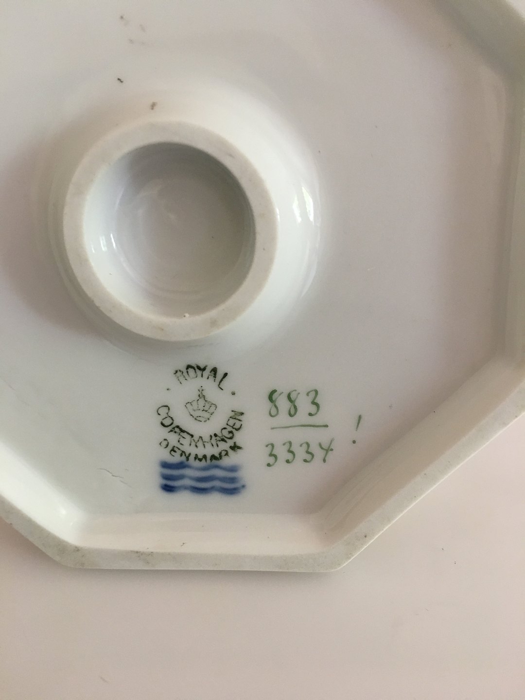 Royal Copenhagen Guldhornene med Orange Kant Lystestage No 883/3334. 5.5 cm H