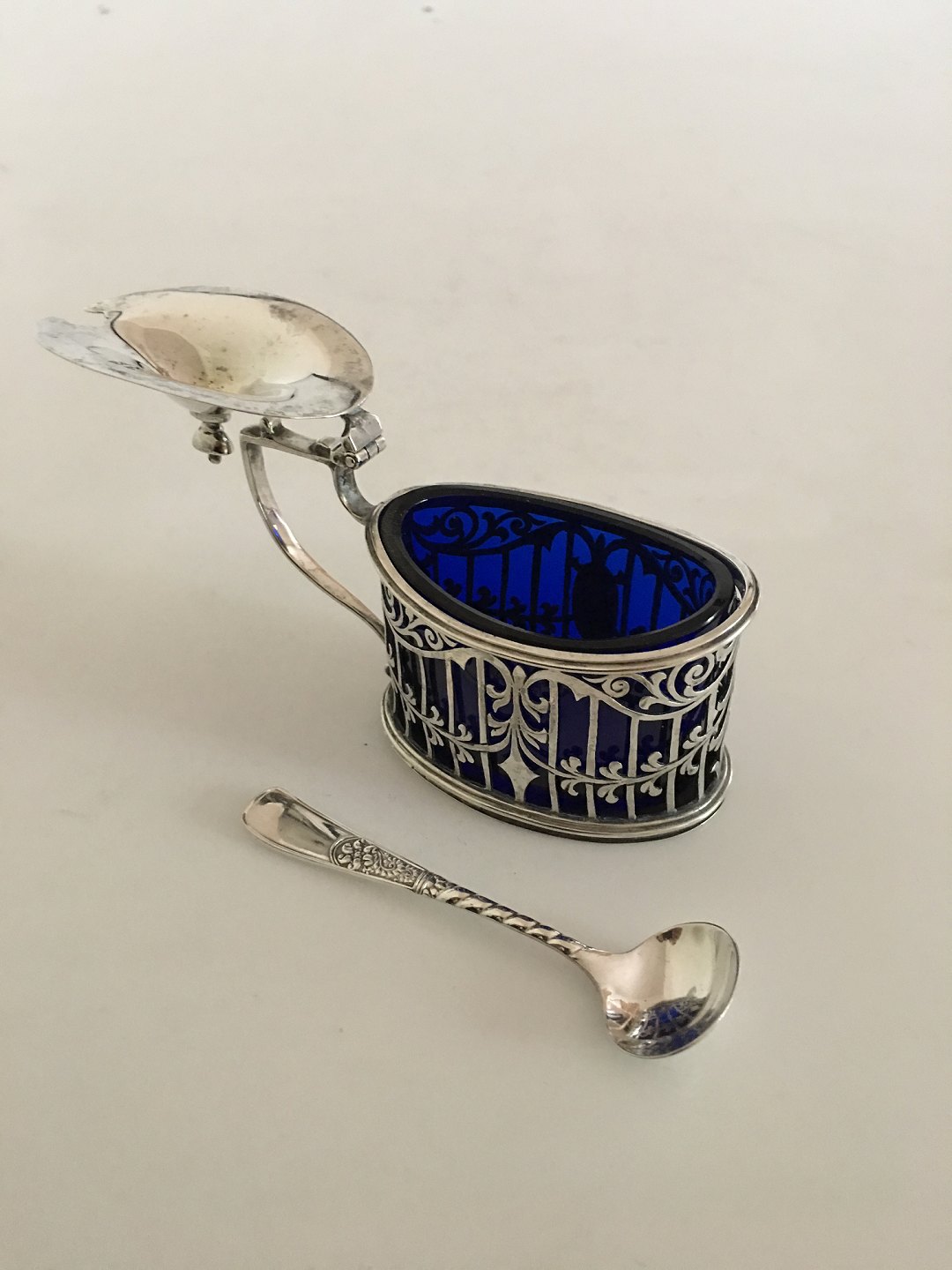 Birks Mustard pot in sterling silver with spoon in silverplate.