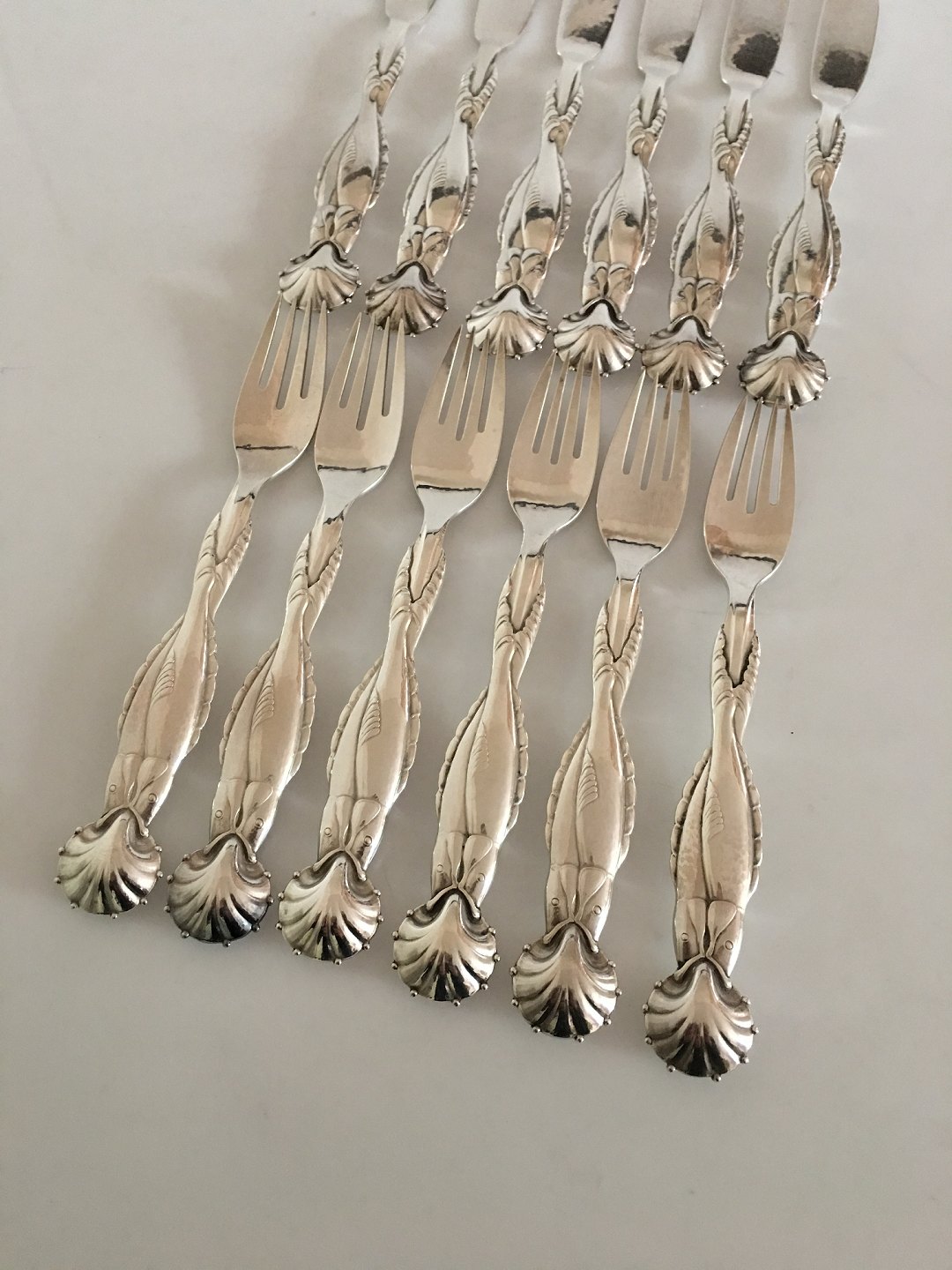 Georg Jensen "Ornamental" Fish Flatware No. 55 Knife and Fork for 6 People in Sterling Silver