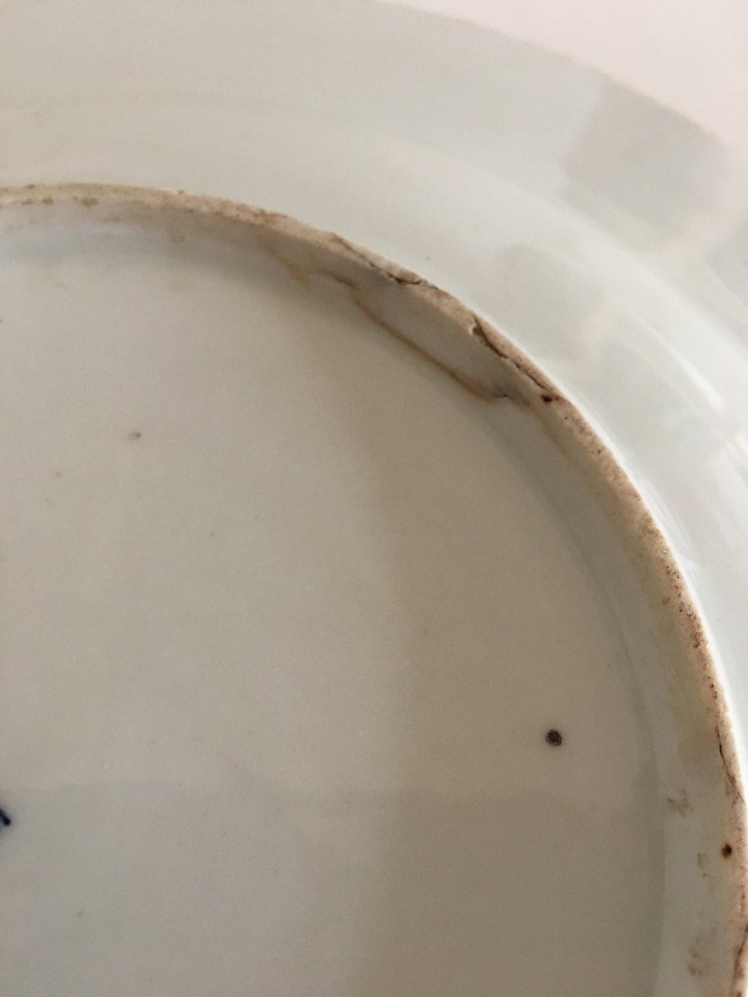 Antique Royal Copenhagen Plate with Flower Decoration 1790-1810. The porcelain is quite worn and tired looking, and most of the flower decoration is worn off. The plate is chipped two places underneath. Measures 24.5 cm