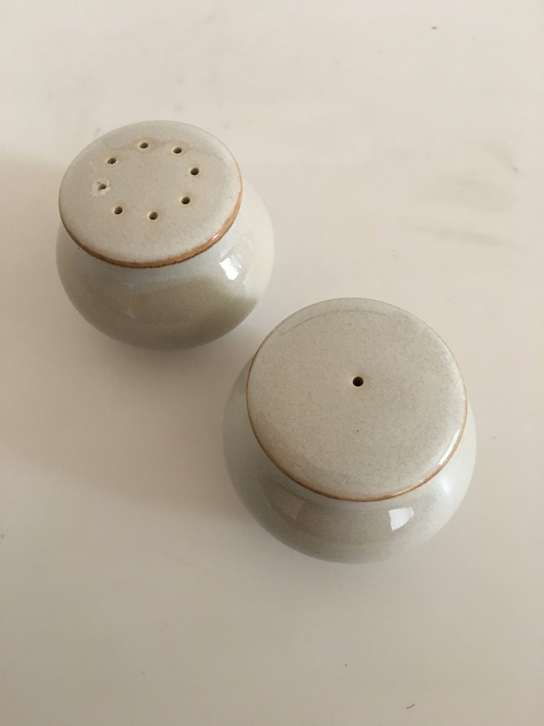 Bing & Grondahl Glazed Stoneware "Coppelia" Salt and Pepper Set. Measures 5 cm / 1 31/32 in. x 6.5 cm / 2 9/16 in. dia.