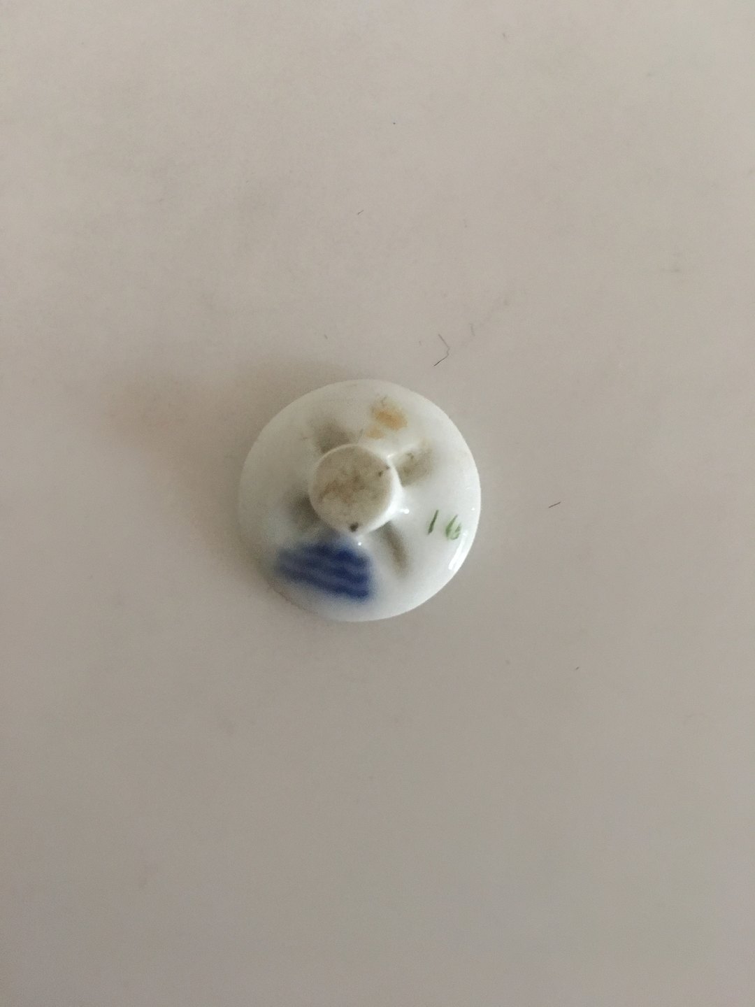 Royal Copenhagen Porcelain Button with Handpainted Flower Motif. 1.7 cm dia.
