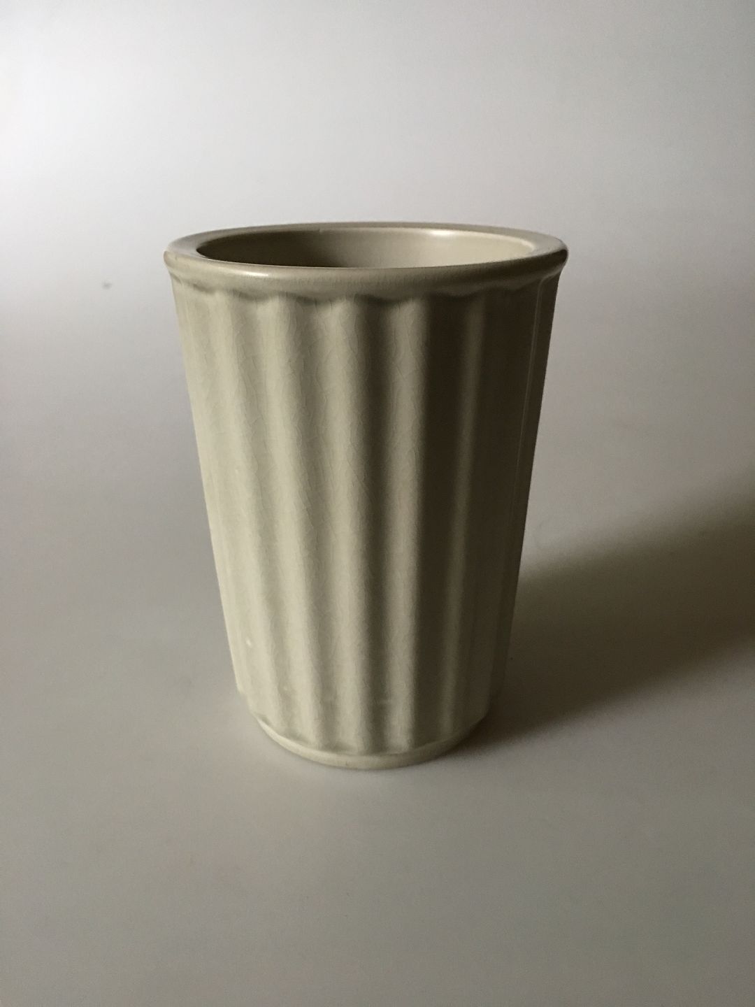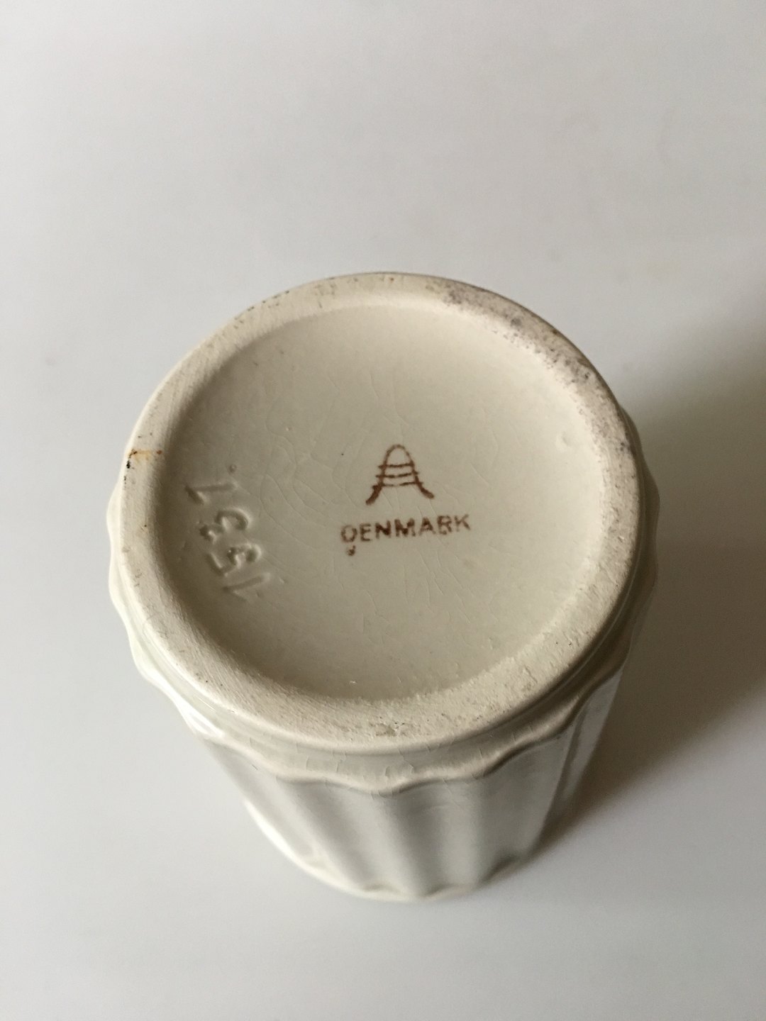 Aluminia Hvid Rillet Vase. 12.5 cm H. 8.5 cm H.