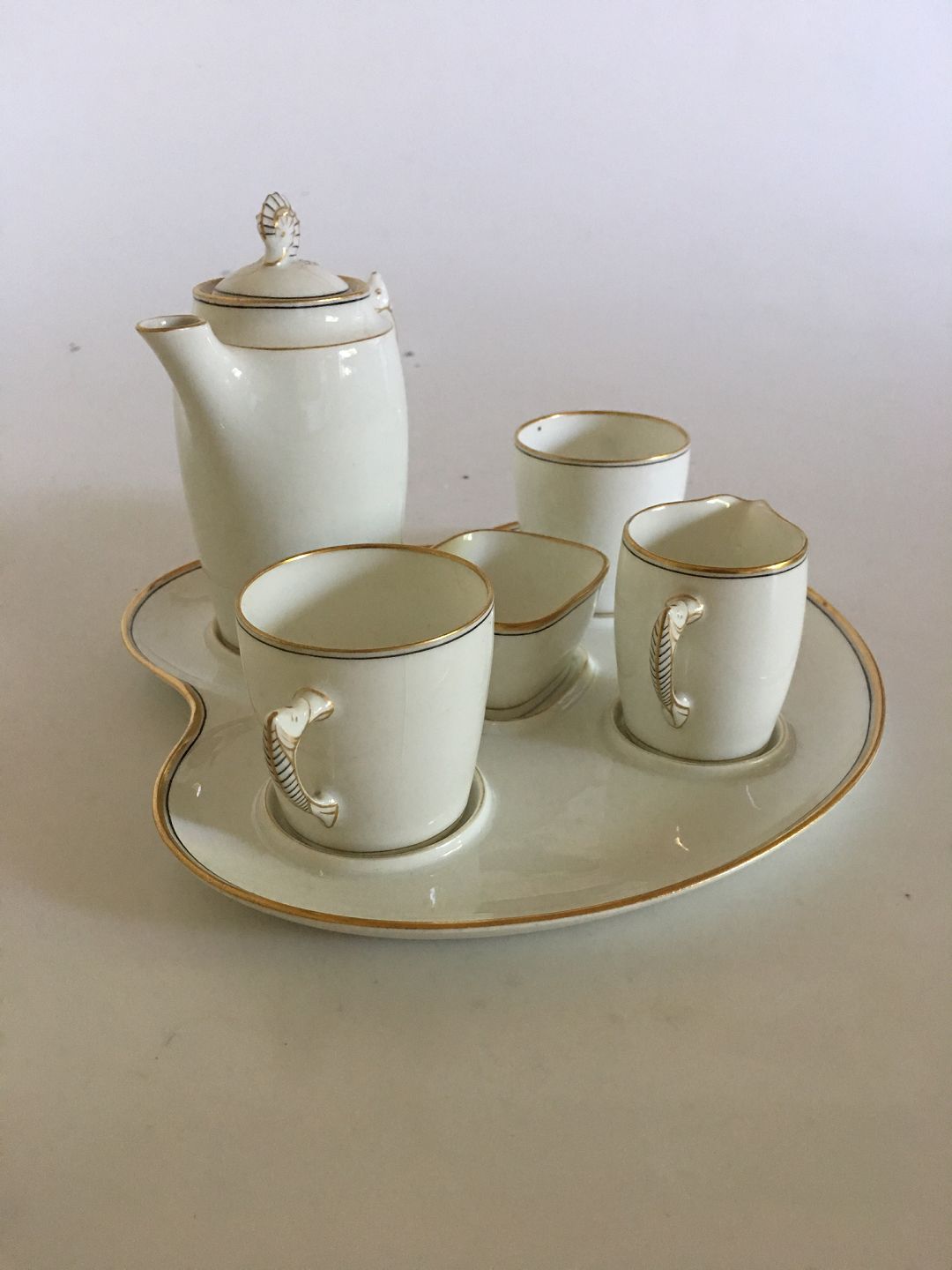 Bing & Grondahl Mocha Set, with tray, Jug, Creamer, Two Cups and Sugar Bowl. In nice condition, with only minimal wear on the gold. The mocha jug measures 12 cm H. With old B&G Stamps