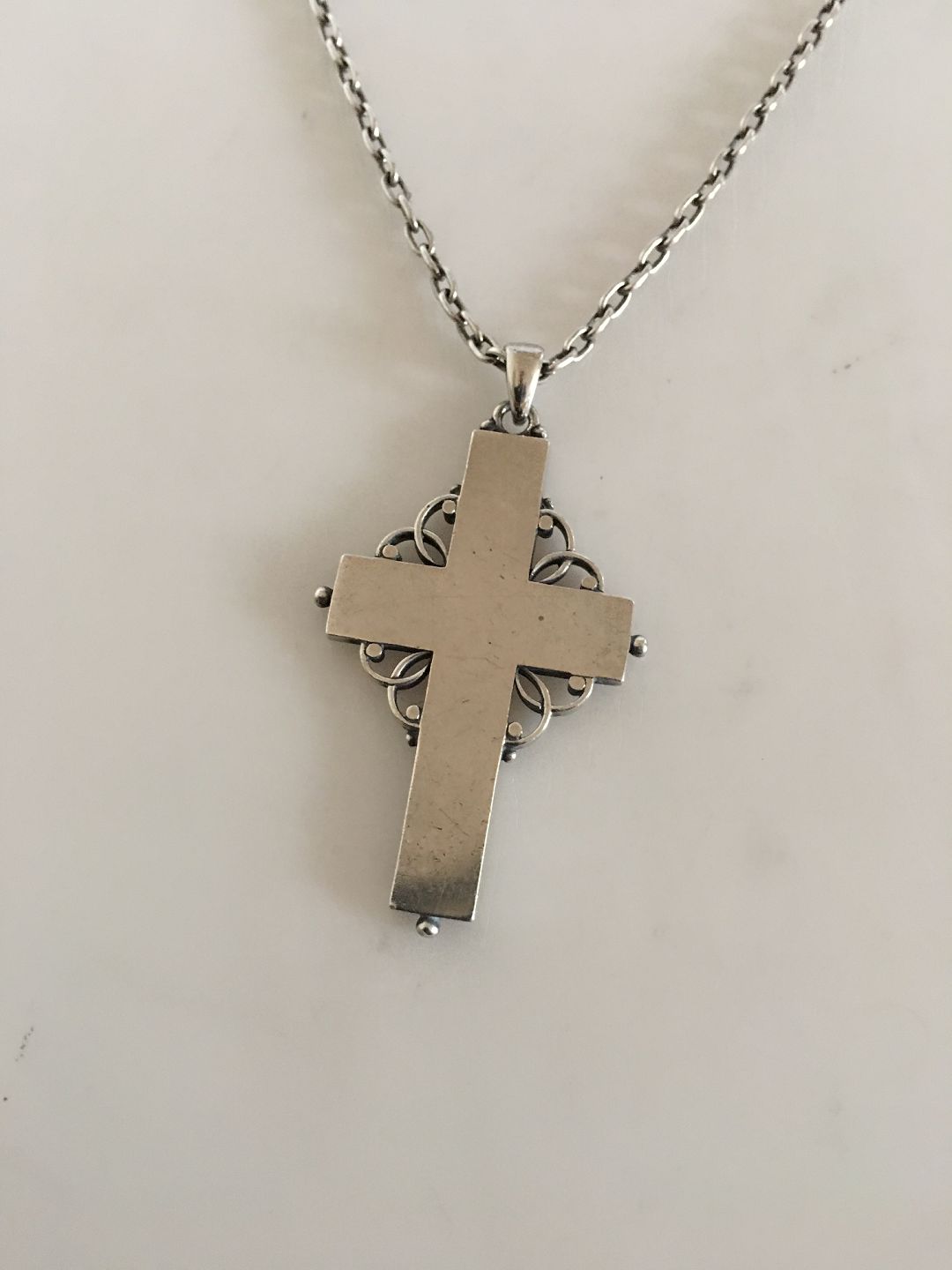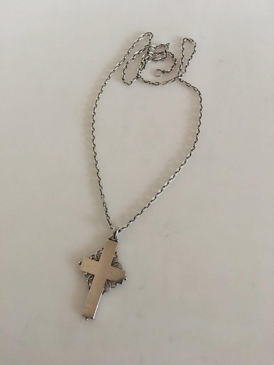 Georg Jensen & Wendel Sterling Silver Cross Pendant Necklace No 89B. Cross measures 5.2 cm x 3 cm. Weighs 21 g / 0.75 oz. Manufactured 1945-1951