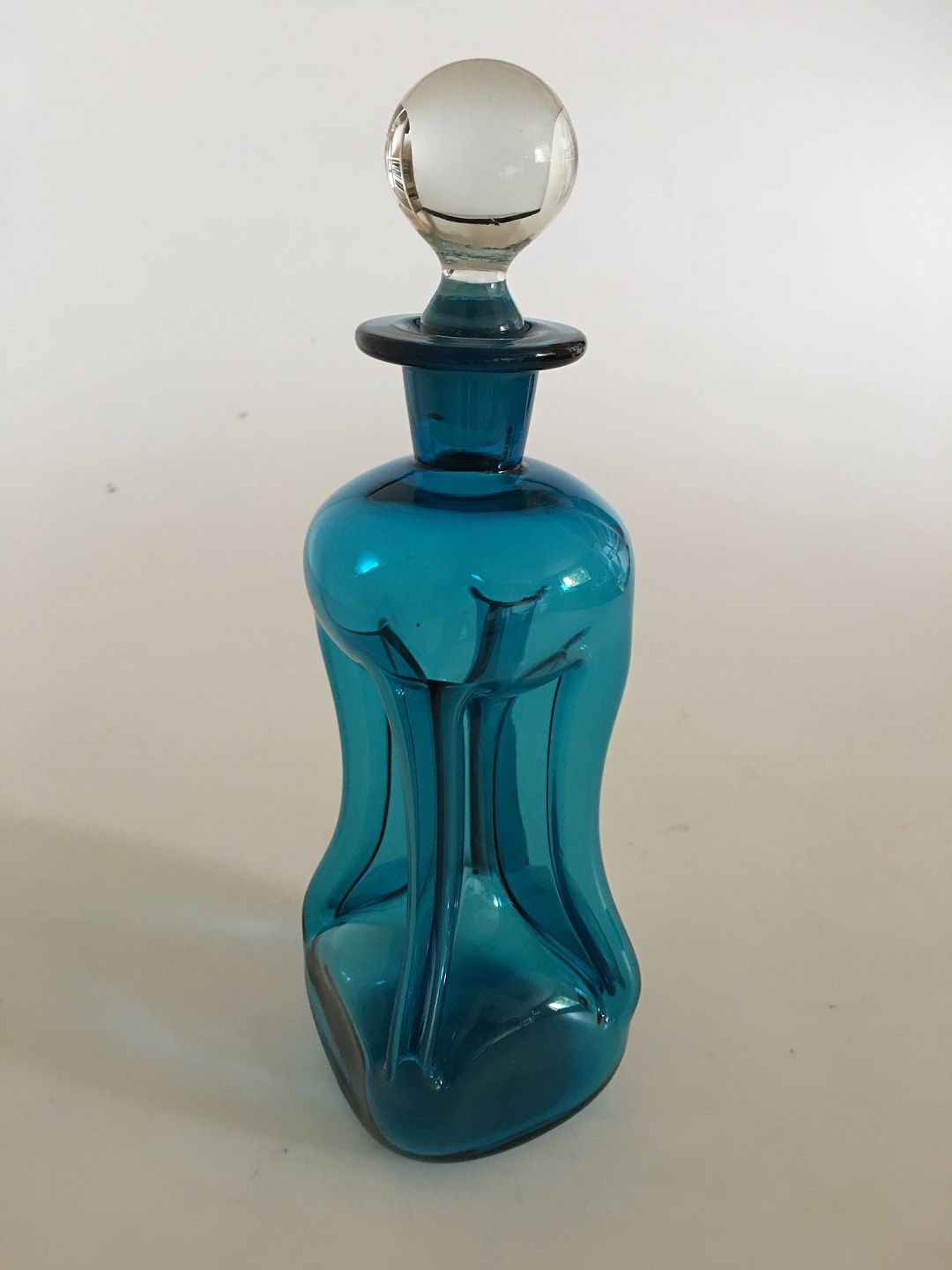 Holmegaard / Kastrup Glassworks Kluk Kluk Decanter in Blue Glass with Clear Bottle Lid. 24 cm H. In nice condition.