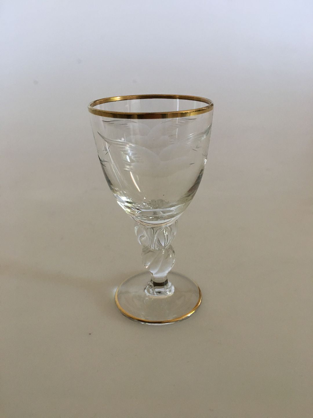 Lyngby Seagull Schnapps Glass from Lyngby Glassworks. 8 cm H. Glasservice with gold on rim and foot with ingraved seagull. Designed to match Bing & Grondahl's Seagull dinner service.