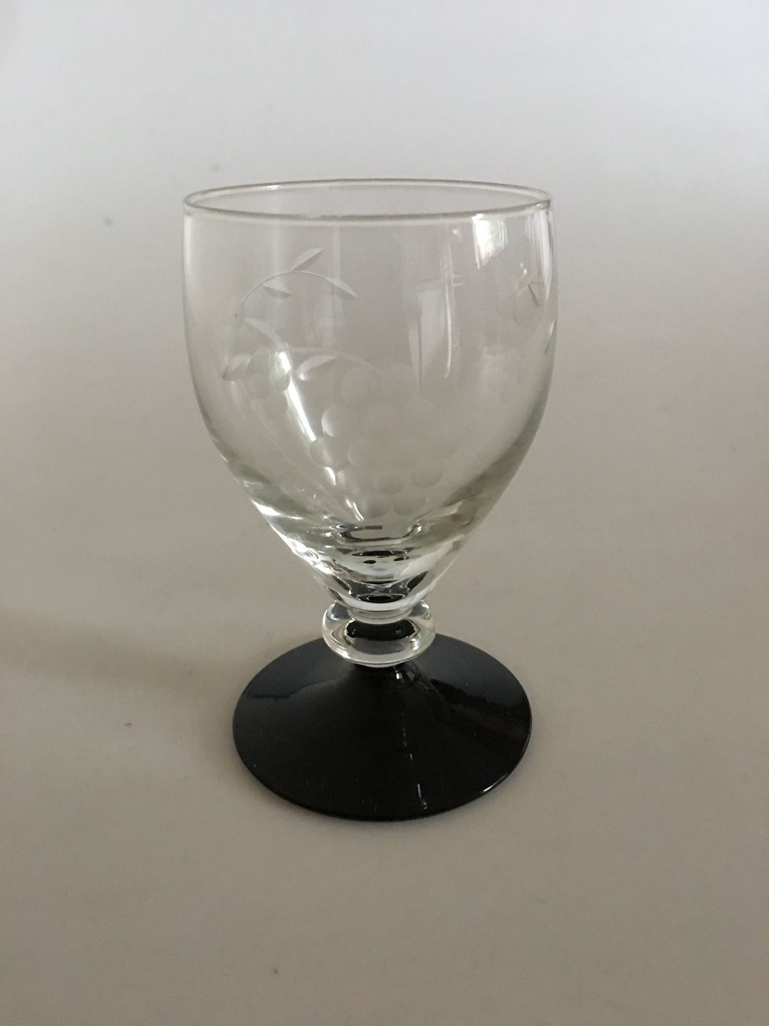 "Jane" Blackfooted White Wine Glass from Holmegaard with ingraved grapes. 10 cm H. Manufactured first in 1942.