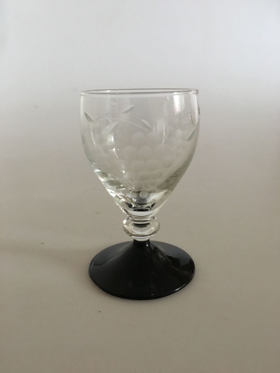 "Jane" Sortfods Portvinsglas med Drueslibning fra Holmegaard. 8 cm H. Produceret første gang i 1942.