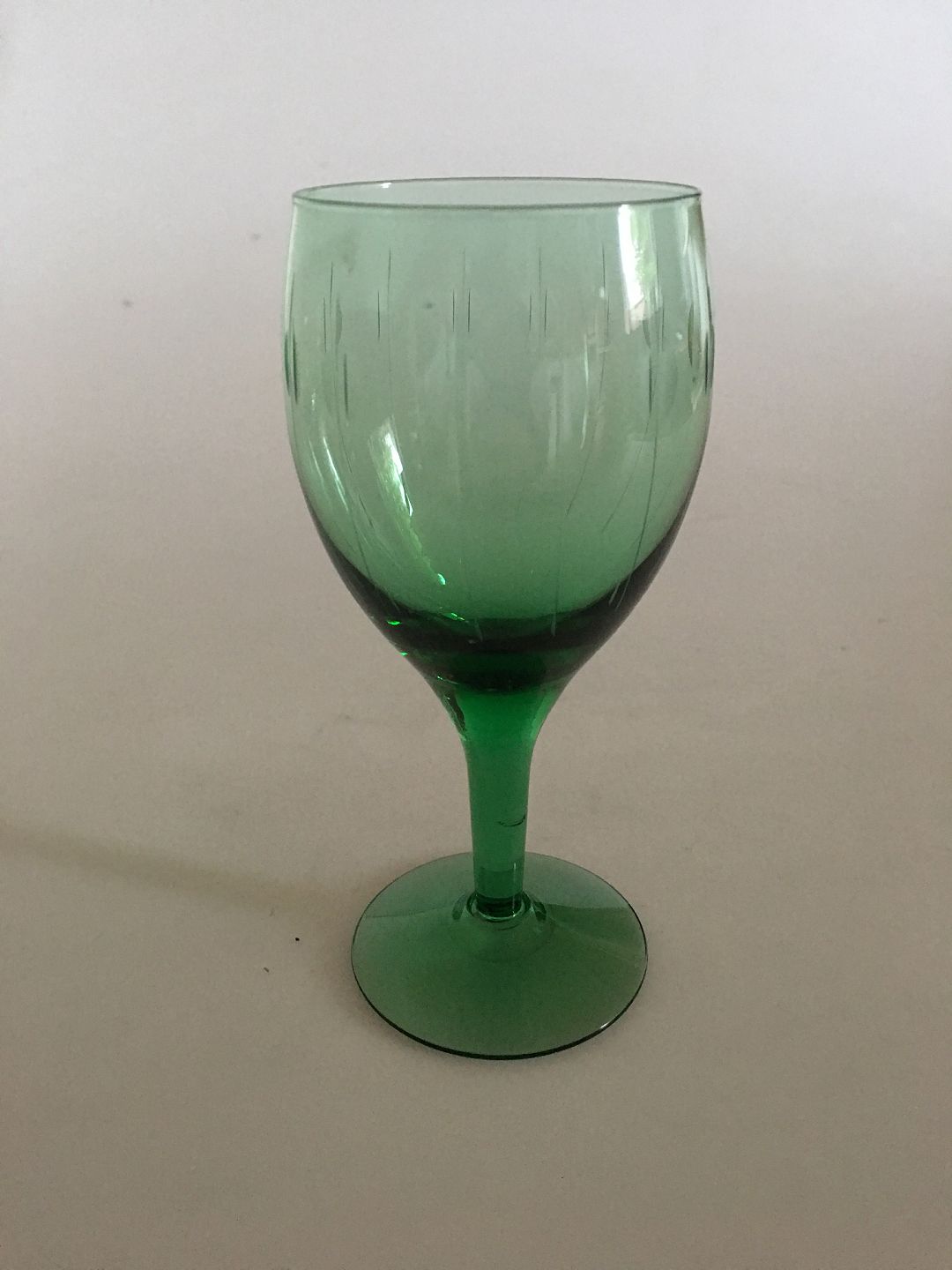 Kirsten Pil Green White Wine Glass from Holmegaard. 13 cm H. The glass is ingraved with round shapes punctuated by a straight line. Designed by Per Lütken in 1956.