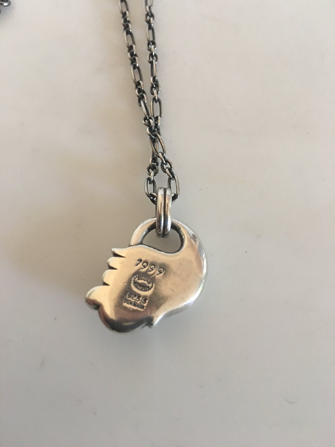 Georg Jensen Sterling Silver 1999 Annual Necklace Pendant with Rose Quartz. The chain measures 45 cm L (17 23/32"). Pendant measures 2.1 cm (0 53/64"). Weighs 14 grams. (0.50 oz).