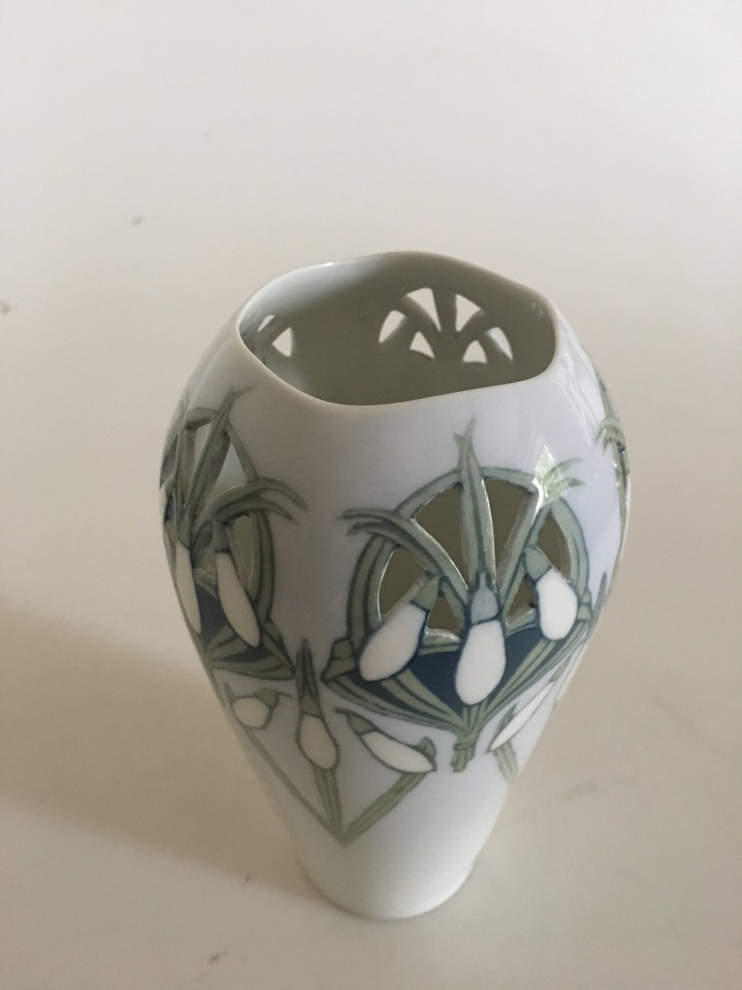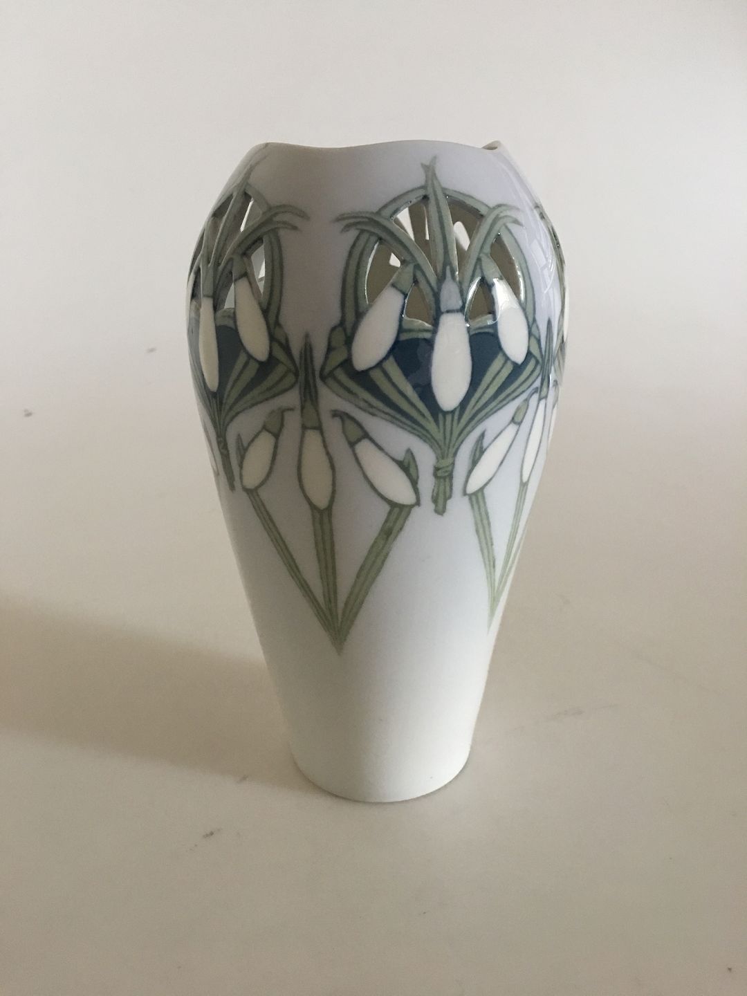Royal Copenhagen Art Nouveau Vase gennembrudt og med motiv af Vintergækker No 470/256
