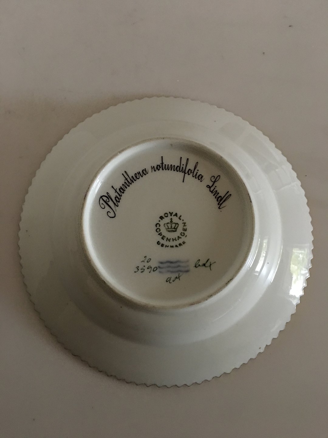 Royal Copenhagen Flora Danica Lille Dyb Tallerken No. 3590. Latinsk Navn: Plathanthera Rotundifolia Lindl. 14.5 cm diameter. I perfekt stand.