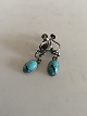 Georg Jensen Sterling Sølv Øreringe No 17 med Turkis Sten. 3.5 cm. Vejer tilsammen 5 gram. Produceret efter 1945. (Øreskrue lås)