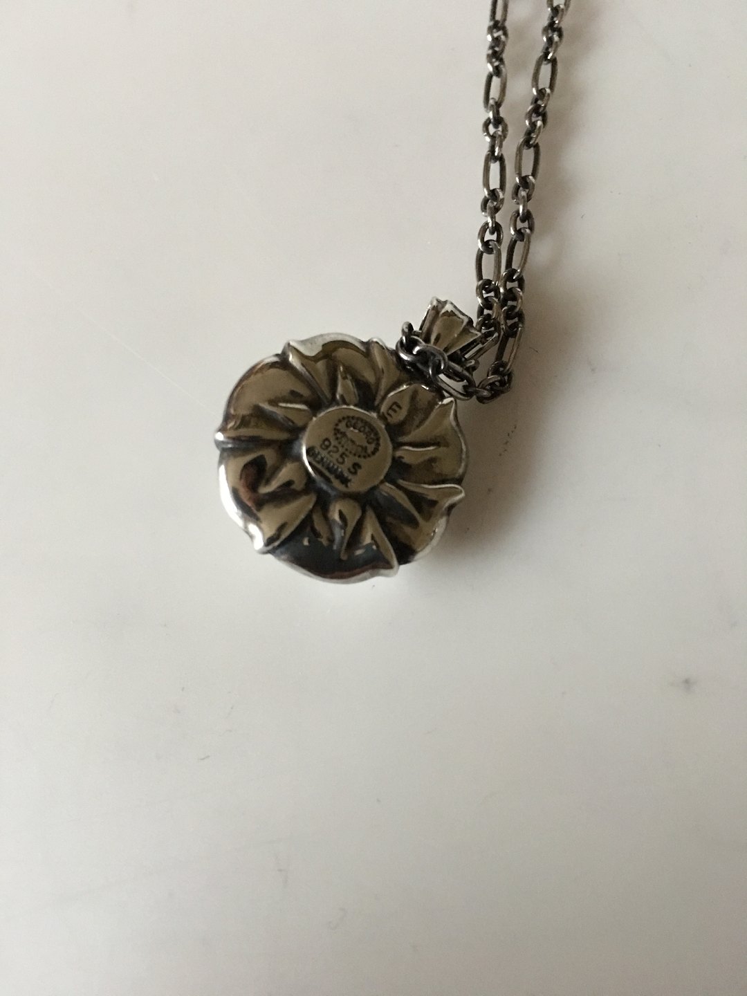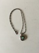 Georg Jensen Sterling Silver Necklace with Green Stone. Pendant measures 2 cm / 0 25/32 in. diameter. Chain measures 44 cm / 17 21/64 in. Weighs 15.5 g / 0.55 oz.