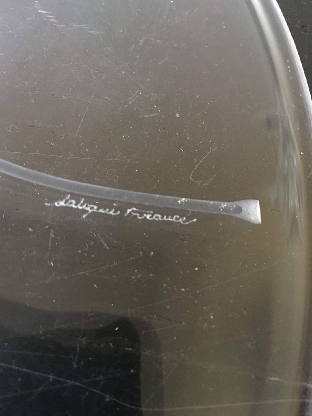 Lalique Glass Platter with Leaf Ornament. Measures 32 cm (12 19/32") In good condition. Has a few tiny scratches.