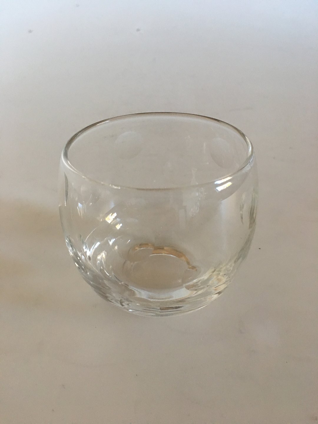 Marmelade Glass with Round Carvings. Measures 7 x 7 cm. I good condition.
