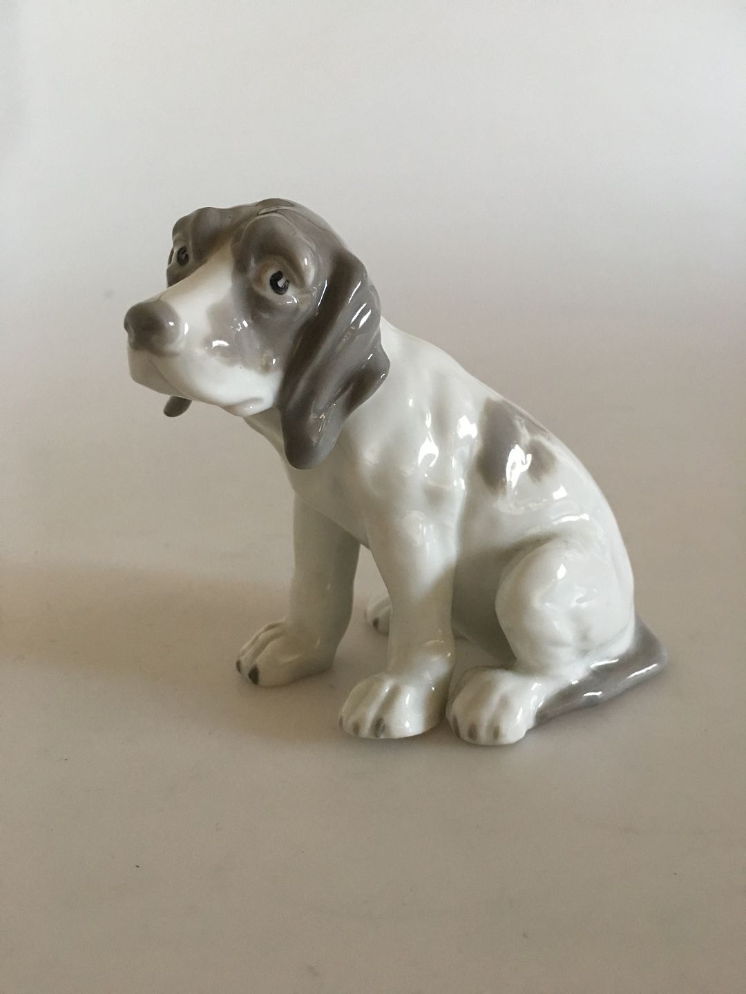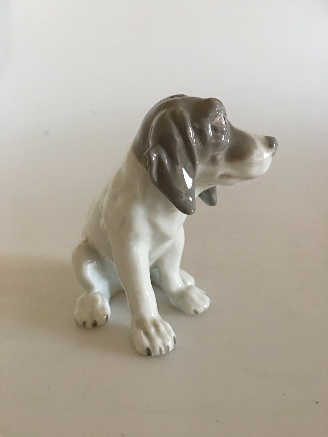 Heubach Porcelæn Figur af Hund. 8.5 cm (3 11/32 in.). I fin stand.