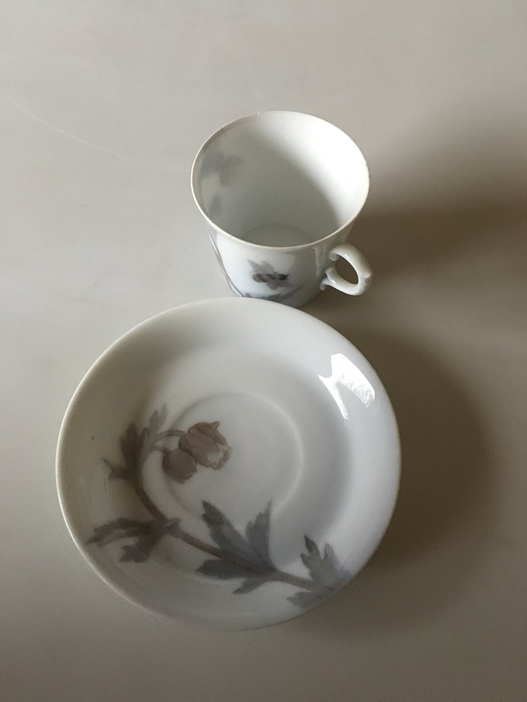 Royal Copenhagen Art Nouveau Mokka Kop med Underkop. Koppen har to Hårrevner og et lille skår på kanten. Underkoppen i fin hel stand. Kop måler 5.2 cm H. 5.8 cm dia.
