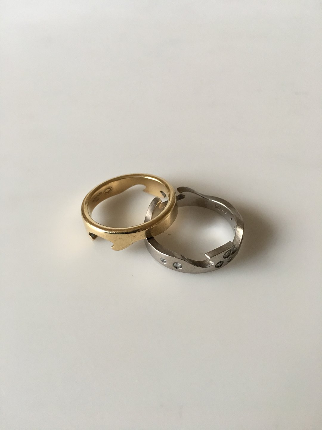 Georg Jensen 18K Gold and White Gold Fusion Ring with Diamonds designed by Nina Koppel. Ring Size 54 (Us Size 7).