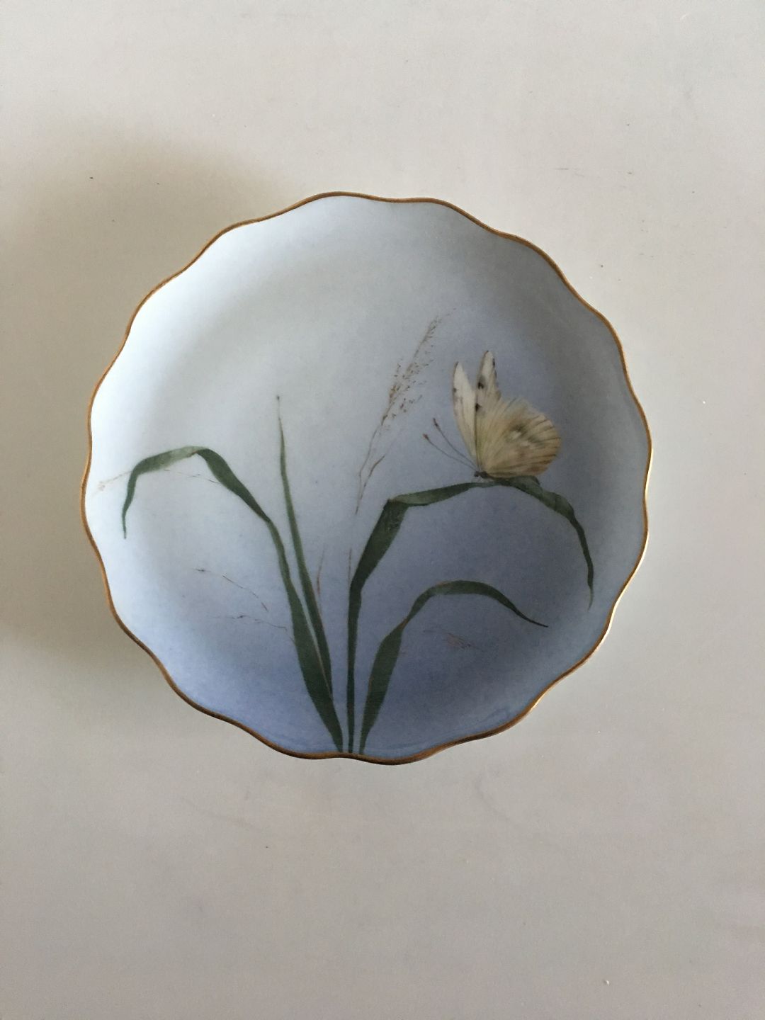 Bing & Grøndahl Kagetallerken med Blomsterdekoration og Guldkant. 17 cm diameter.