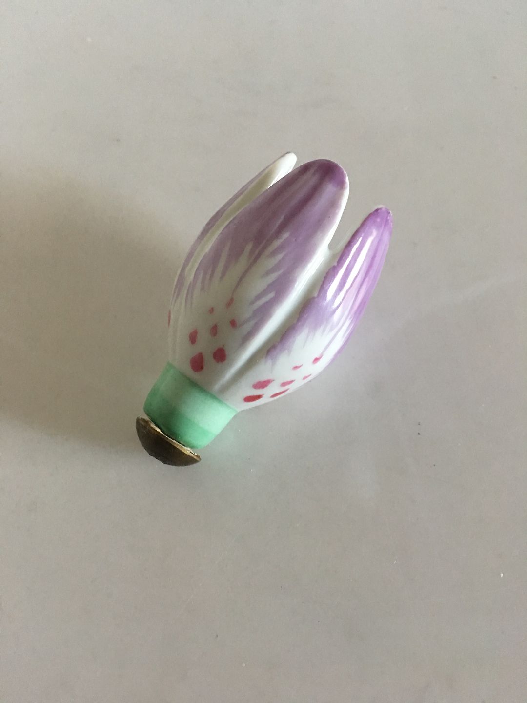Royal Copenhagen Purple Porcelain Flower. Originally a decorative part of a chandelier. Measures 6.5 cm. In nice condition.