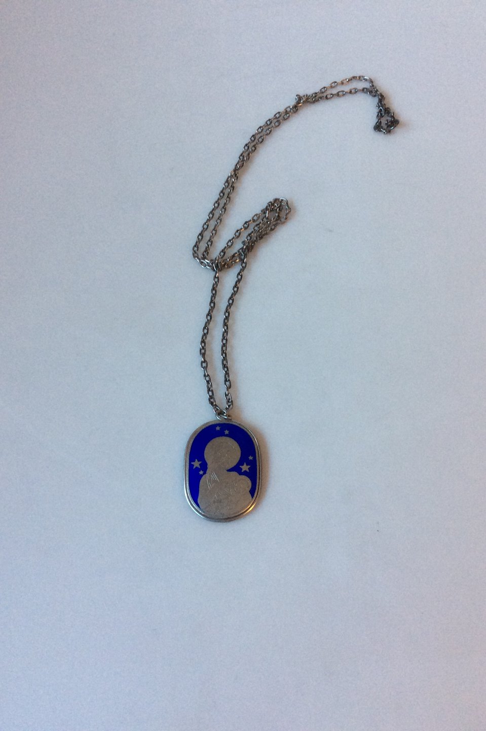 Georg Jensen Sterling Silver Pendant with chain. Blue Enamel motif of Maria and Jesus No 103B.