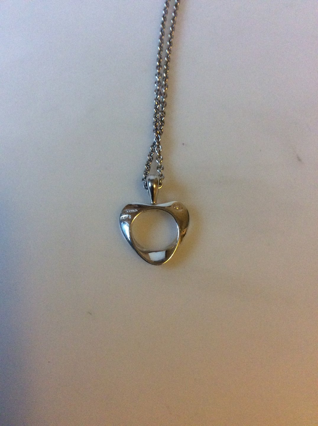Georg Jensen Necklace Sterling Silver "Hearts of Georg Jensen". Messures: 1,5 mm Anchor Chain: 45 cm / 17 3/4", Pendant: 1,4 cm / 0 18/32" x 1,5 cm / 0 19/32". Weighs 4.1 g / 0.15 oz. The chain can be shortened by using the hoops.