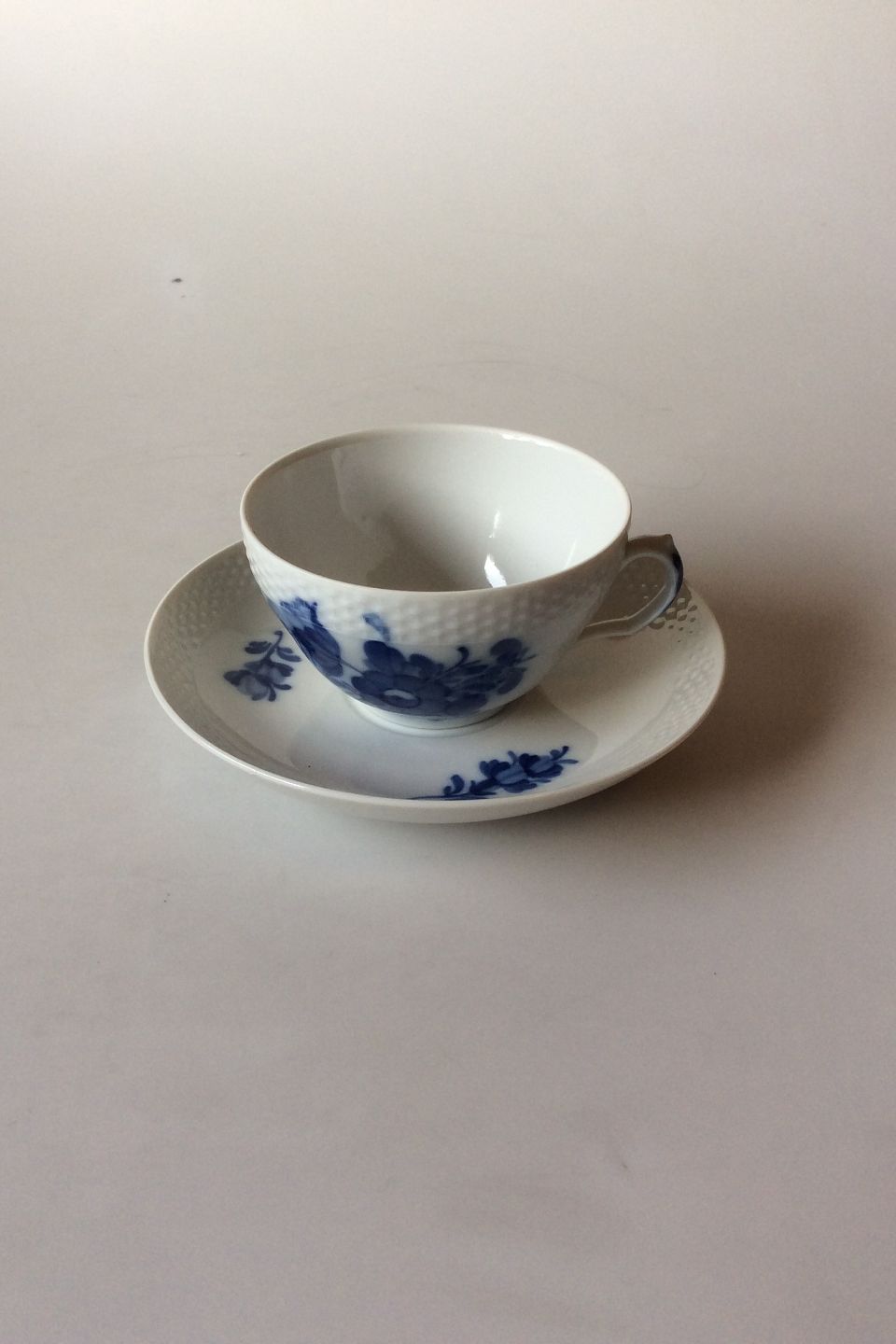 Royal Copenhagen Blå Blomst Flettet Tekop og Underkop No 8269. Kop måler 10,5 x 6 cm (4 9/64 x 2 23/64 in).