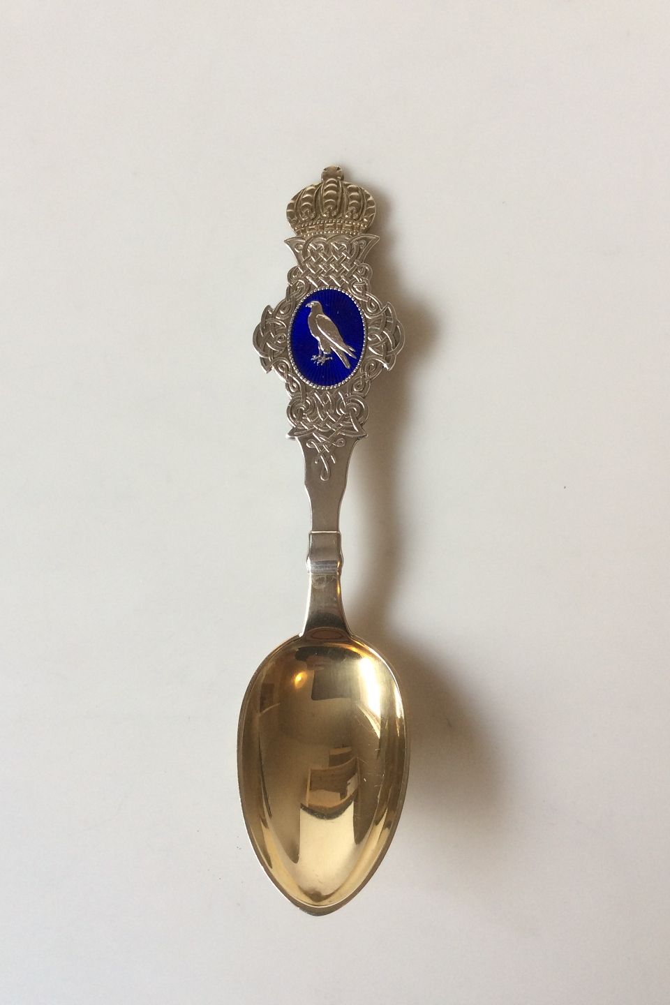 Anton Michelsen Commemorative Spoon In Gilded Sterling Silver, Icelandic Falcon, 1907. Measures 15.8 cm / 6 7/32"