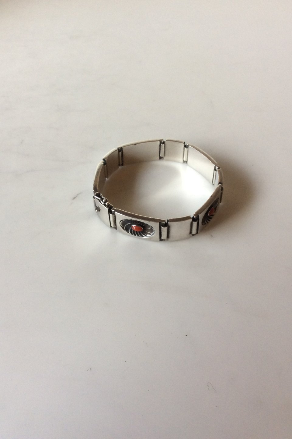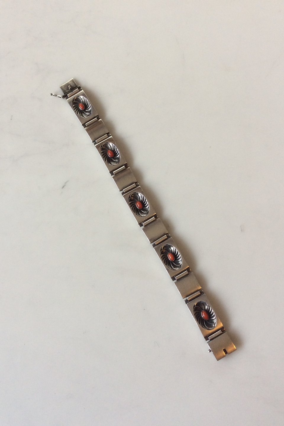 Georg Jensen Sterling Silver Bracelet No 56A. With red cabochon Corals. Designed by Henry Pilstrup, 1933-44. Measures 19 cm / 7 31/64" . Weighs 49 g / 1.75 oz.