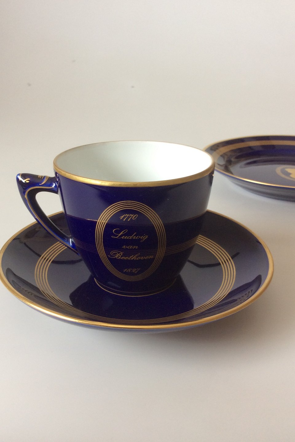 Bing & Grøndahl Komponiststellet Ludvig van Beethoven kaffekop med underkop og sidetallerken. Måler: kop 7 x 13,5 cm, sidetallerken 17 cm