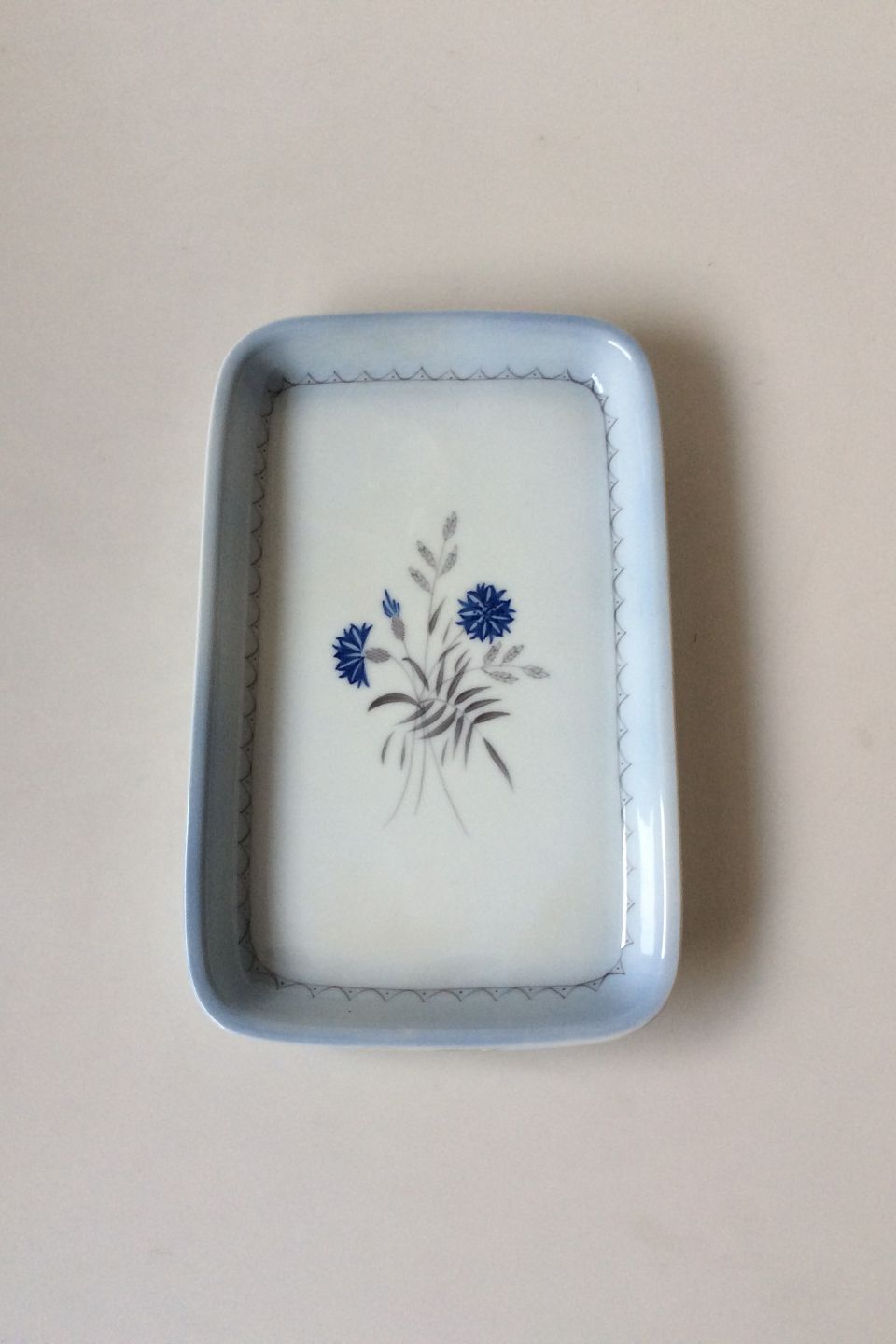 Bing & Grøndahl Demeter / Blå Kornblomst Rektangulært Fad No 16. Måler 24,2 x 15,3 cm